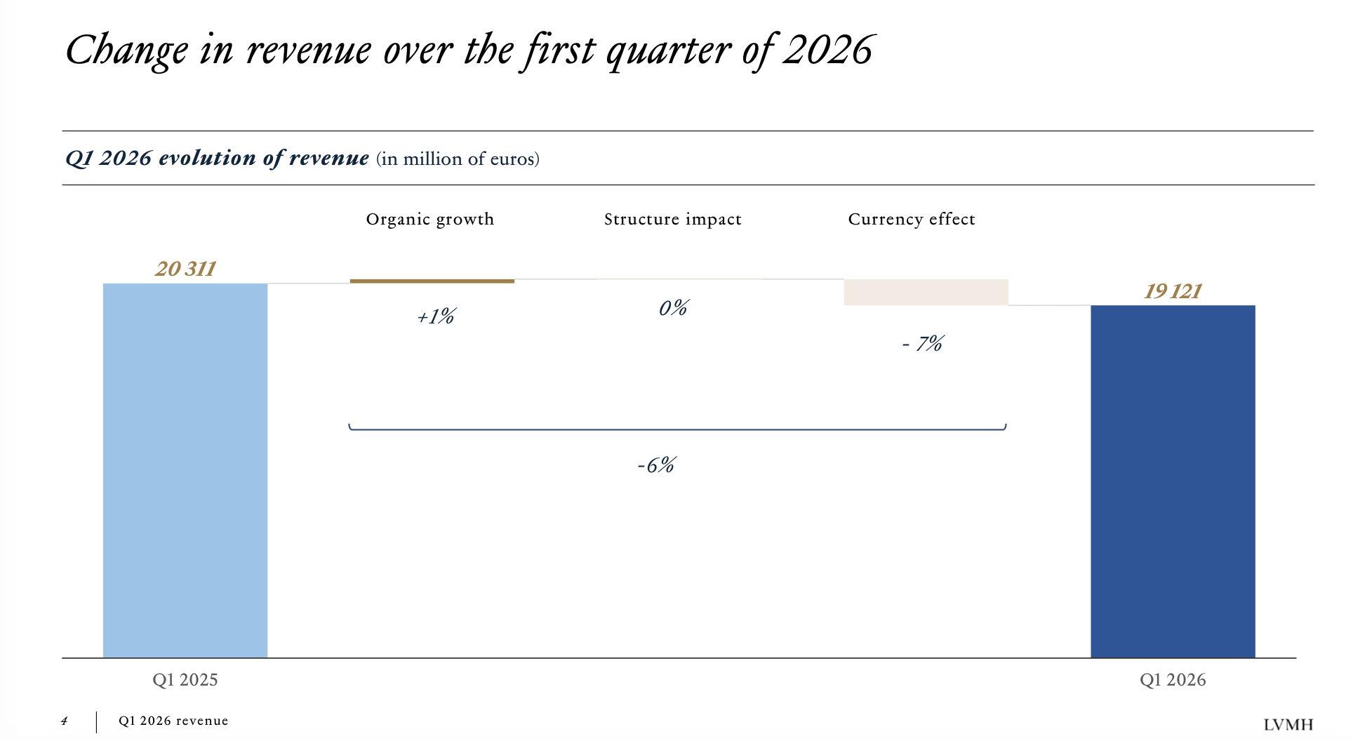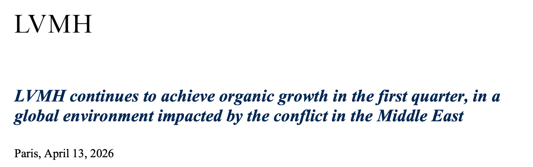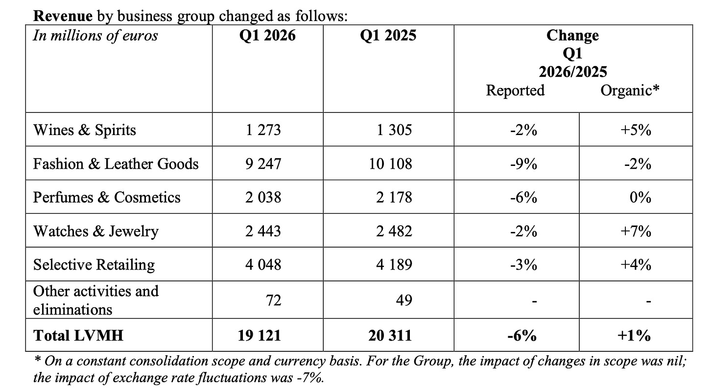 LVMH recorded revenue of €19.1 billion for the first quarter of 2026. On the surface, the headline figure of 1% organic growth might appear resilient in a volatile climate.