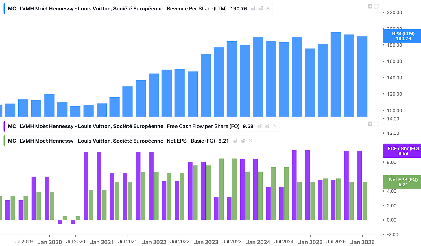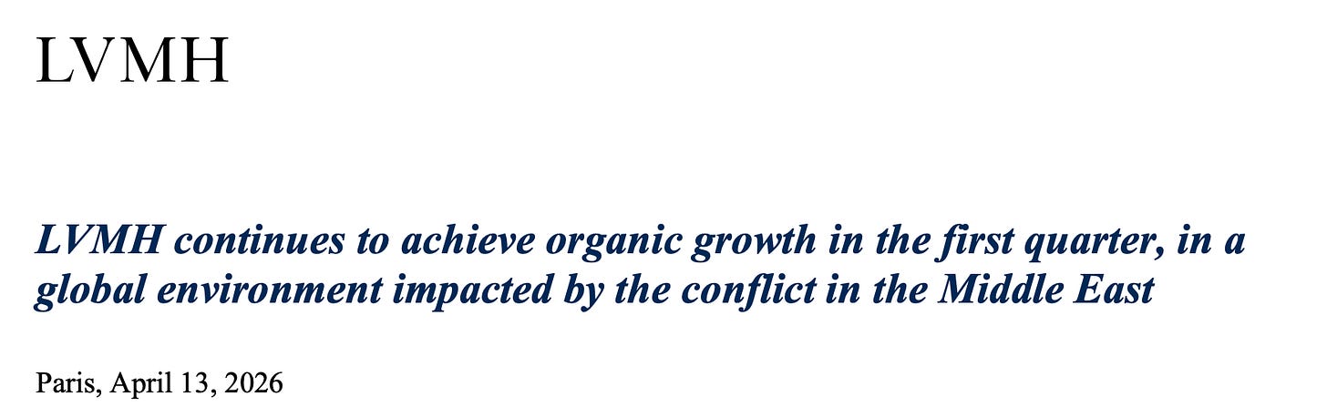 In this post, I want to unpack what this means for the future of the stock. I will start by placing these results in context by comparing them to the latest updates from Hermès and Kering. It is important to see if LVMH is an outlier or if the entire luxury sector is facing a structural shift.
