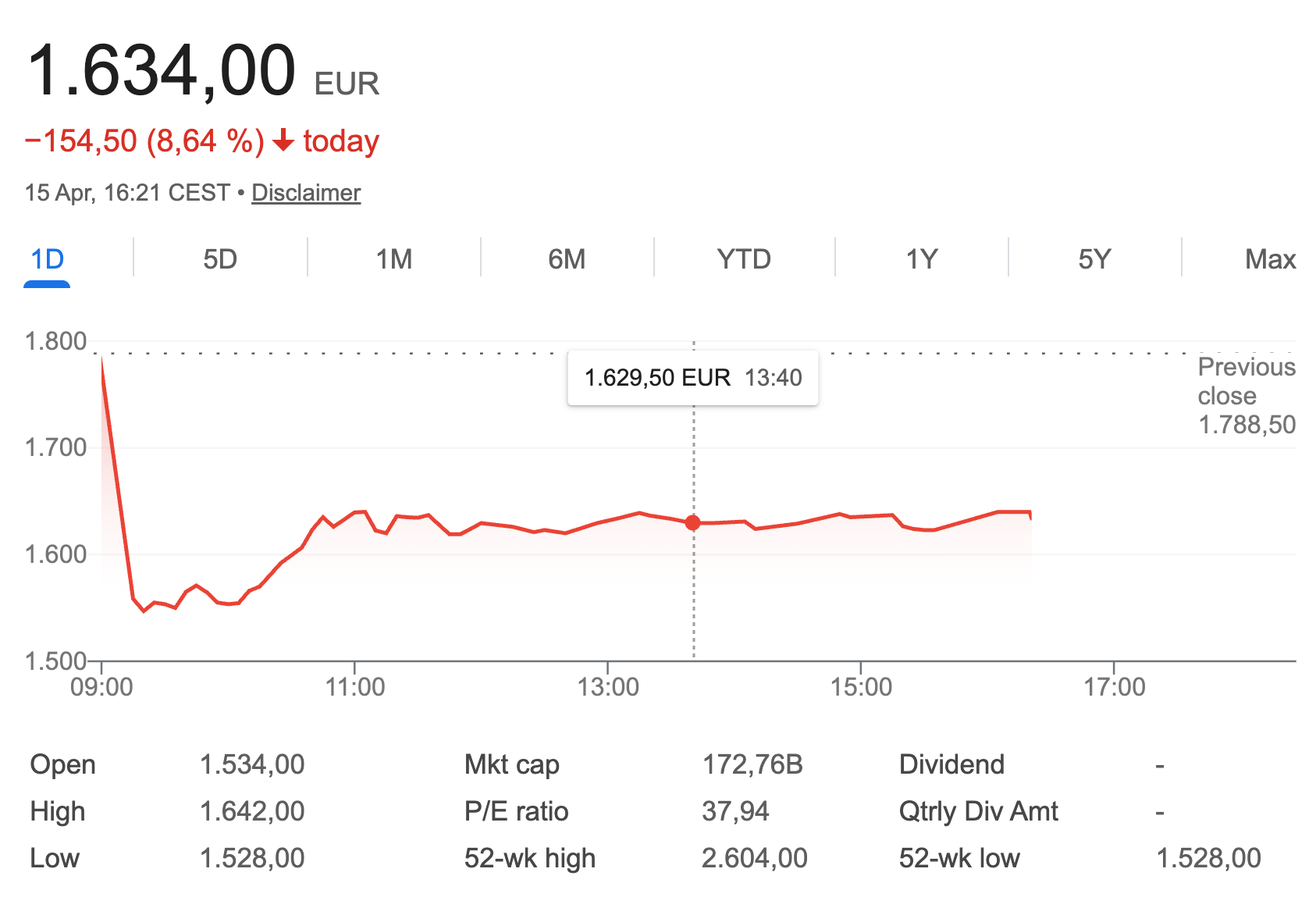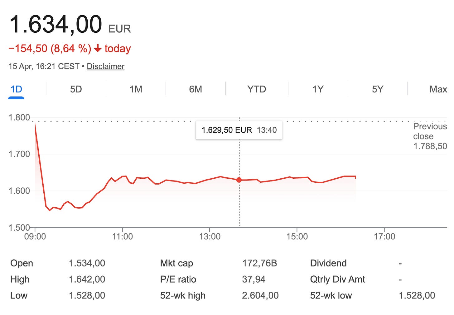 Today’s results from Hermès provided the most shocking evidence of this shift. For years, Hermès has been treated as the ultimate safe haven, a stock supposedly immune to the laws of economic gravity. That illusion shattered this morning. The shares are cratering, down 9% in a single session (-13% at one point).