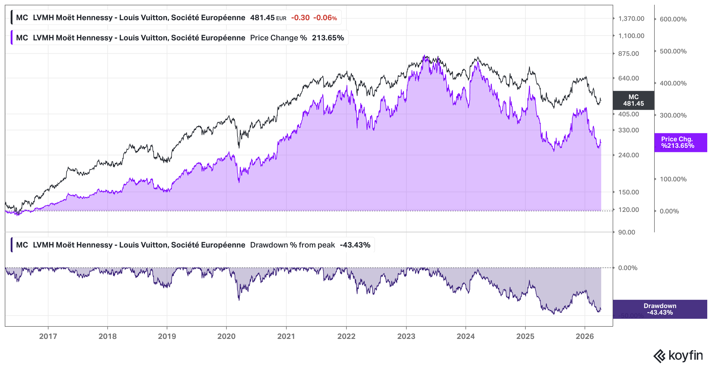 The recent performance of LVMH stock has been a sobering experience for many investors. As you can see from the current price action, the shares have been trending downward for quite some time now and are now hovering near the €480 mark.