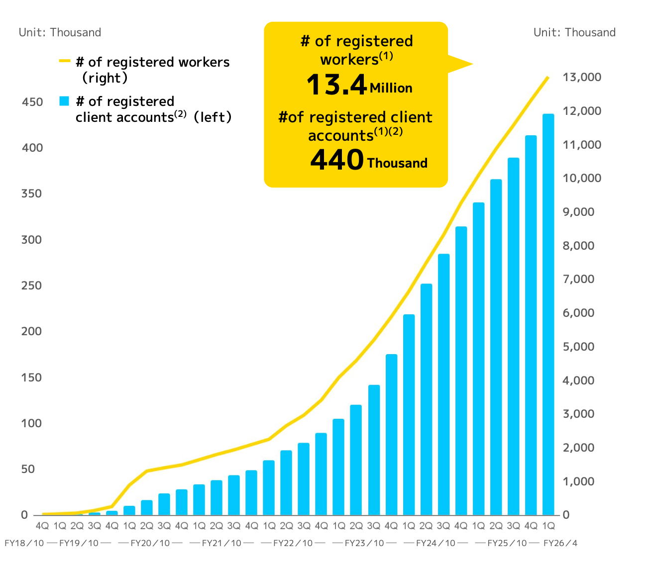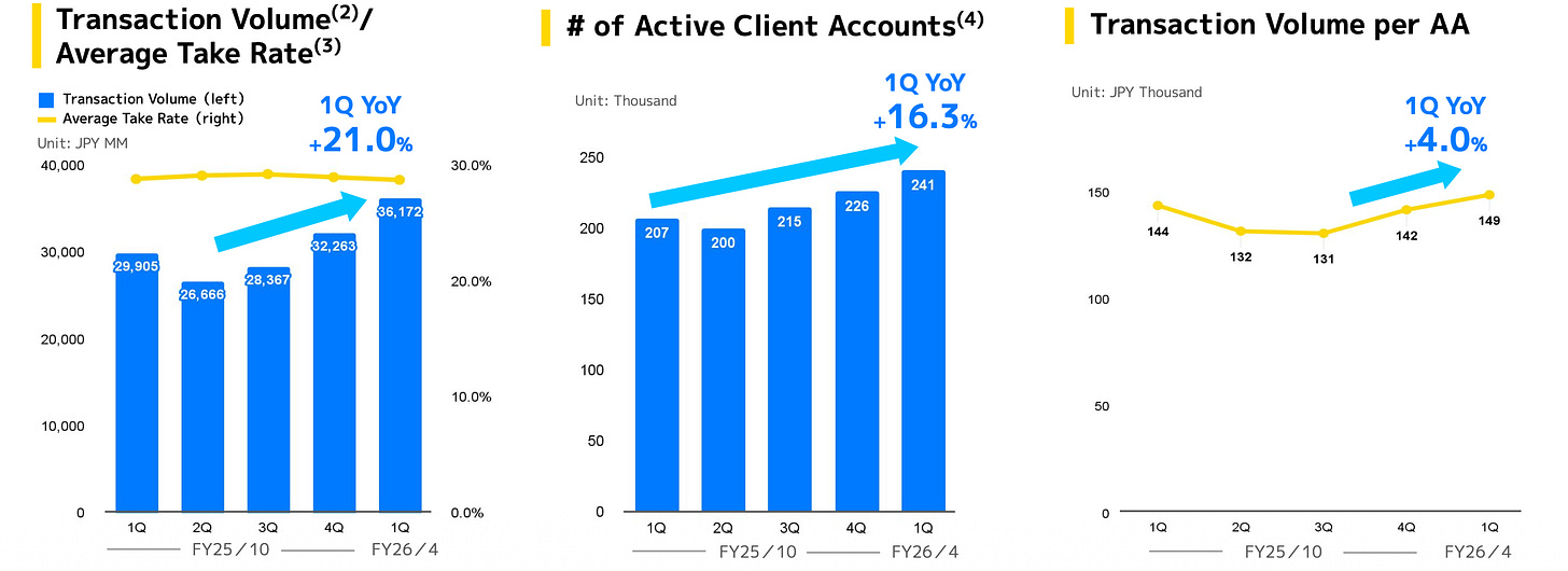 Transaction Volume (GMV): This metric reached JPY 36,172 million, up 21.0% YoY, driven primarily by a significant increase in the number of active workers.