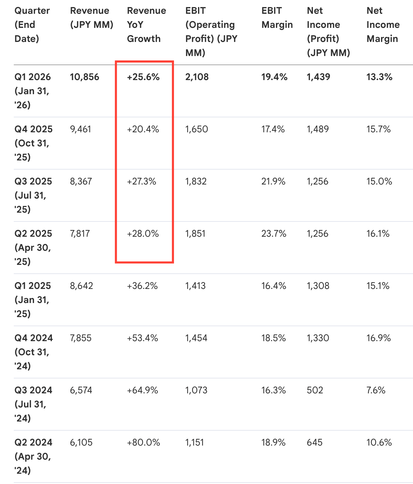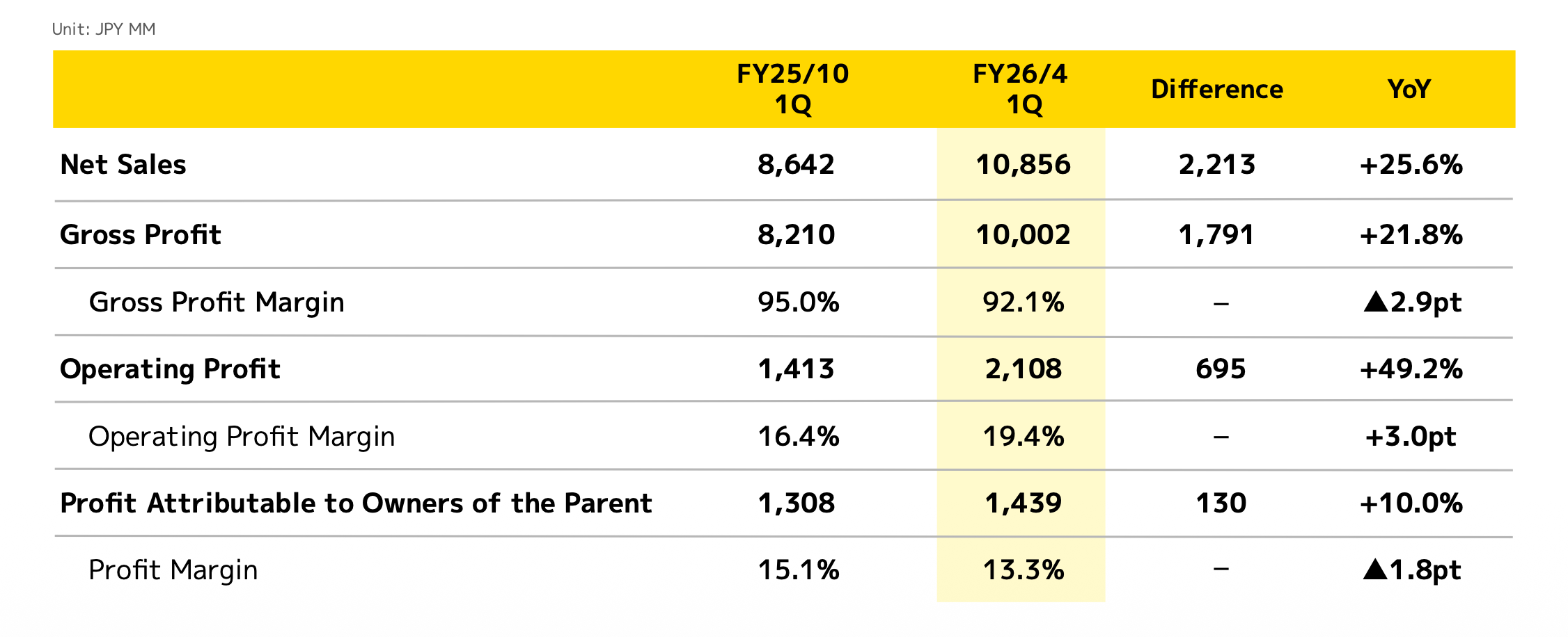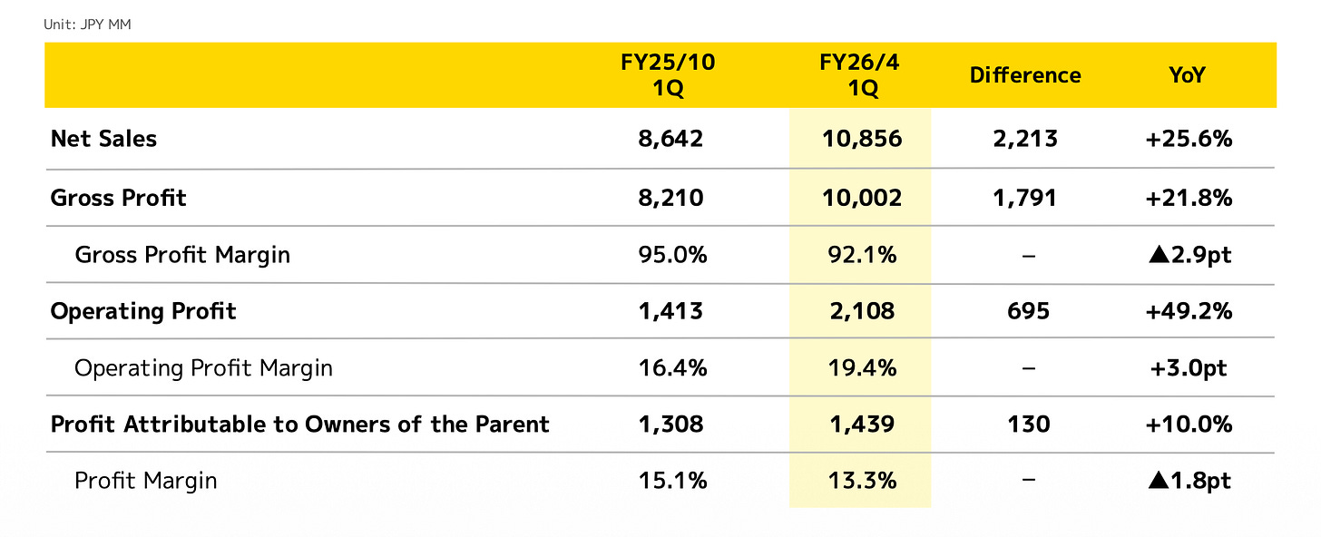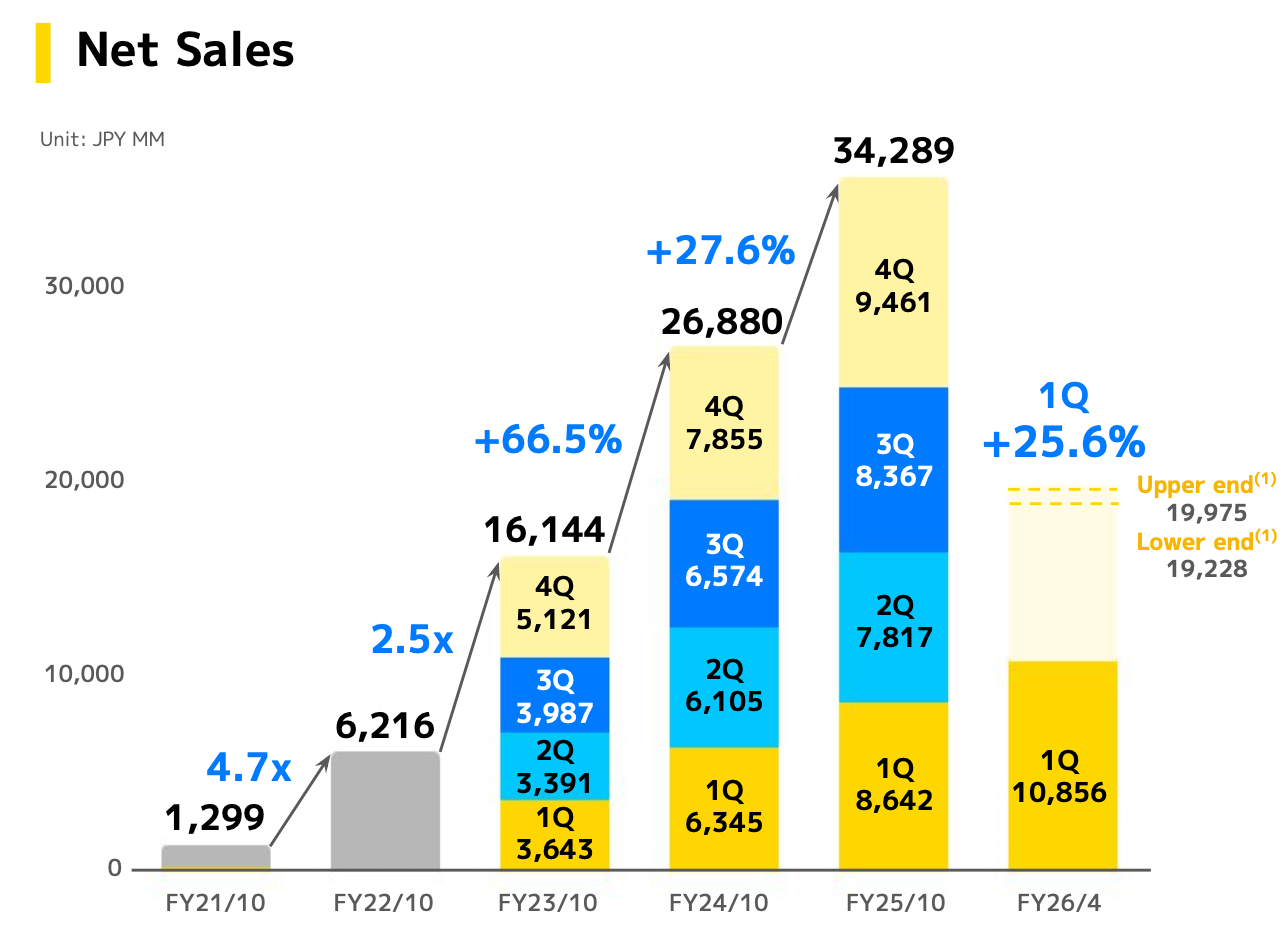 Timee, Inc. delivered a phenomenal performance for the first quarter of FY26, reporting net sales of JPY 10.85 billion, which marked a 25.6% year-on-year (YoY) increase.