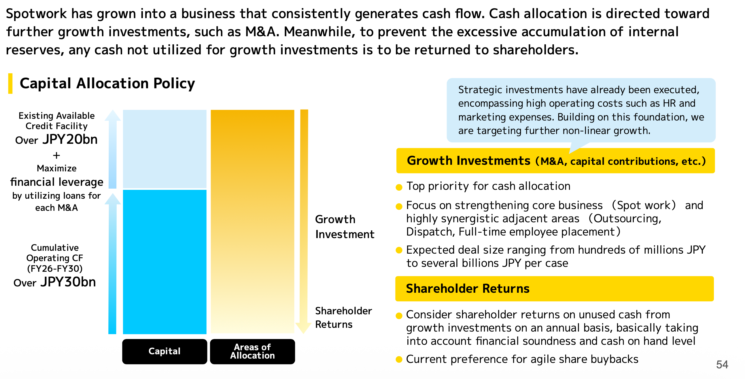 In sum, from the earnings call, it’s clear that Timee is in a critical phase of scaling its operations, with the focus on reinvesting profits into long-term growth strategies. The company is positioning itself for a growth acceleration phase in the coming fiscal year, and the transition of its fiscal year-end is a strategic move to ensure it can fully capitalize on resources during peak demand periods. While shareholder returns are important, they are secondary to ensuring that Timee continues to expand its capabilities and market presence.