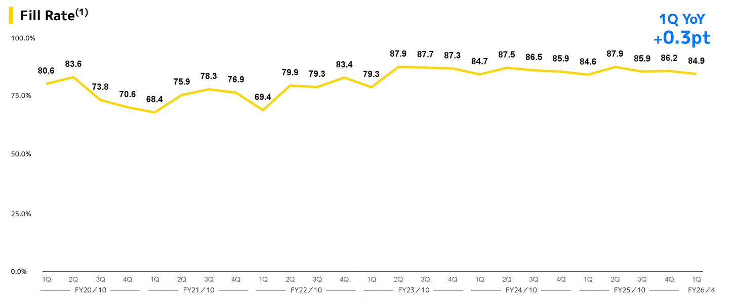 Fill Rate: Despite the busy peak season, the company maintained a solid fill rate of 84.9%, up 0.3 percentage points from the previous year. To remind you of the relevance of this KPI, read the excerpt below from Bristlemoon’s recent investor letter.