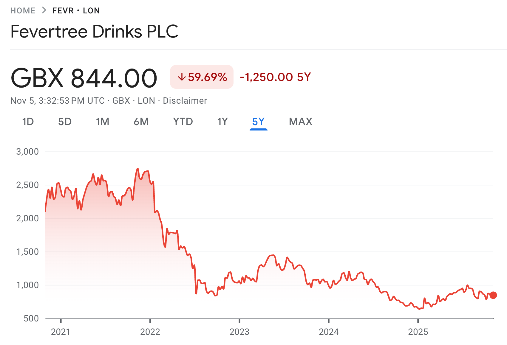 I’ve followed Fever-Tree for years, it always seemed too expensive, but the stock is also down significantly over the last five years (-60%) and this new partnership feels like the deal the company should have done long ago. It finally aligns incentives across the value chain and fixes what’s long been the company’s Achilles’ heel – distribution and “true” local presence.
