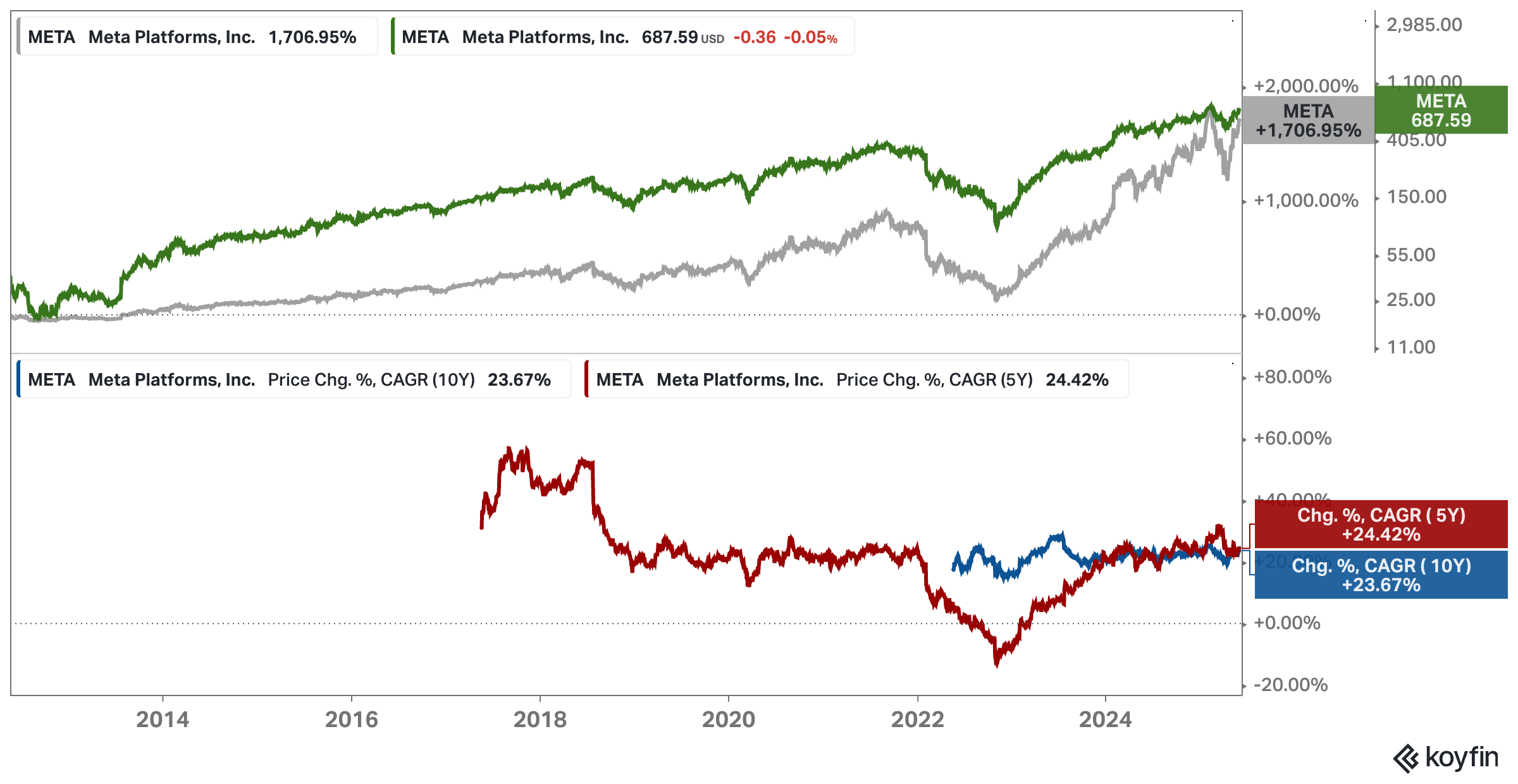 Thanks to Meta’s dual-class structure, Zuckerberg controls the voting shares, even though his economic stake has gradually diluted over time. For governance purists, that’s a problem. But for those who believe in long-term vision, it might just be the reason Meta is what it is today and has produced the spectacular returns long-term shareholders could enjoy.