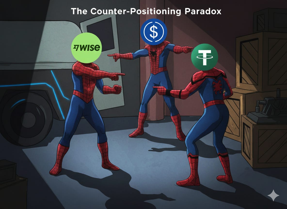From Counter-Positioning to Being Counter Positioned: Wise, Stablecoins, and the Psychology of Pivoting