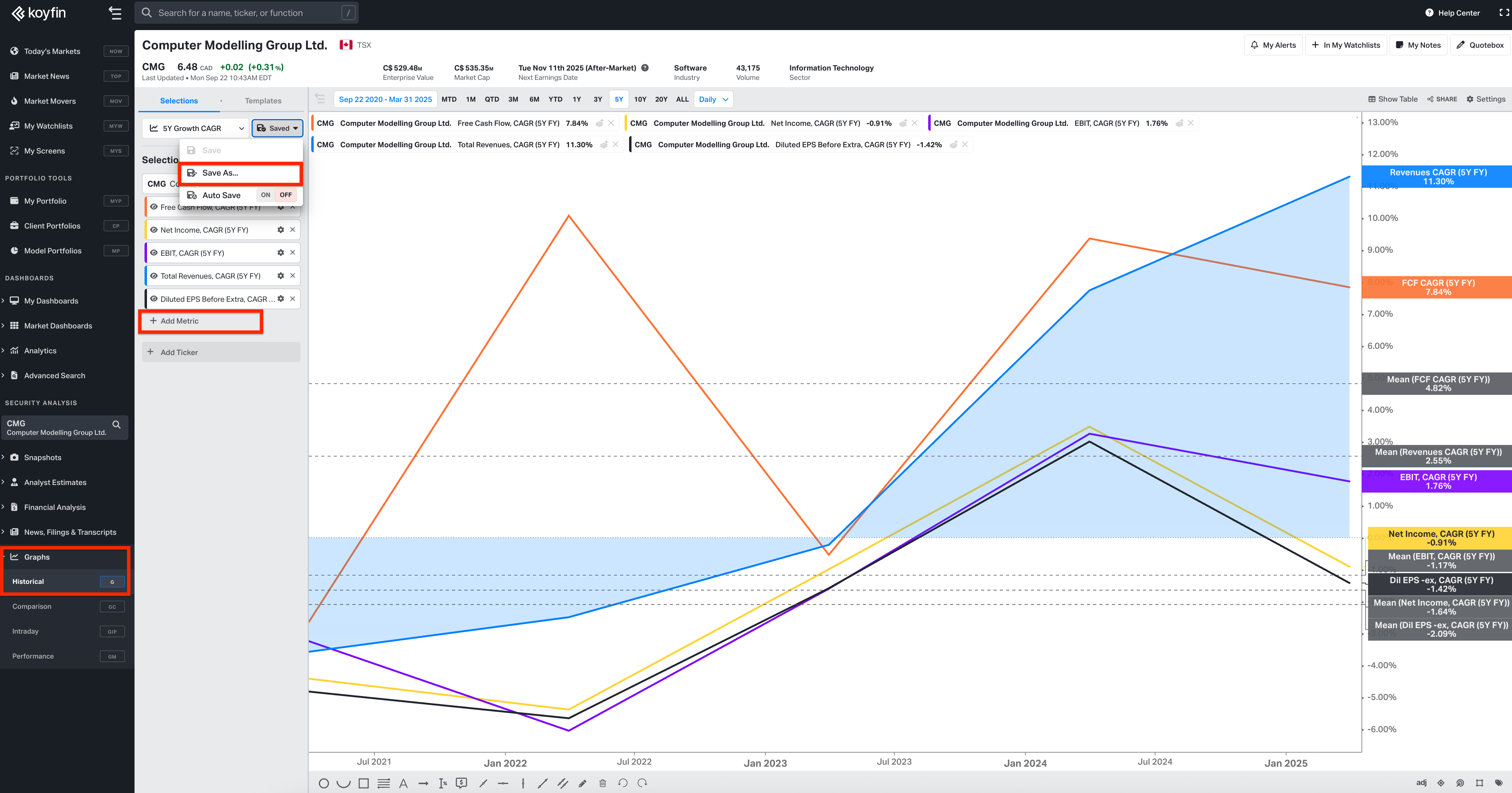 For me, Koyfin has been a real game changer – not just because of the sheer breadth of data it covers, but because of how easy it makes it to build, customize, and save chart templates. With one click, I can pull up a view I’ve fine-tuned to answer specific questions, whether it’s about company fundamentals, price drawdowns, or relative performance.