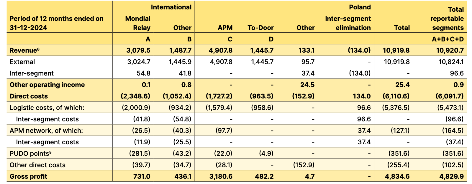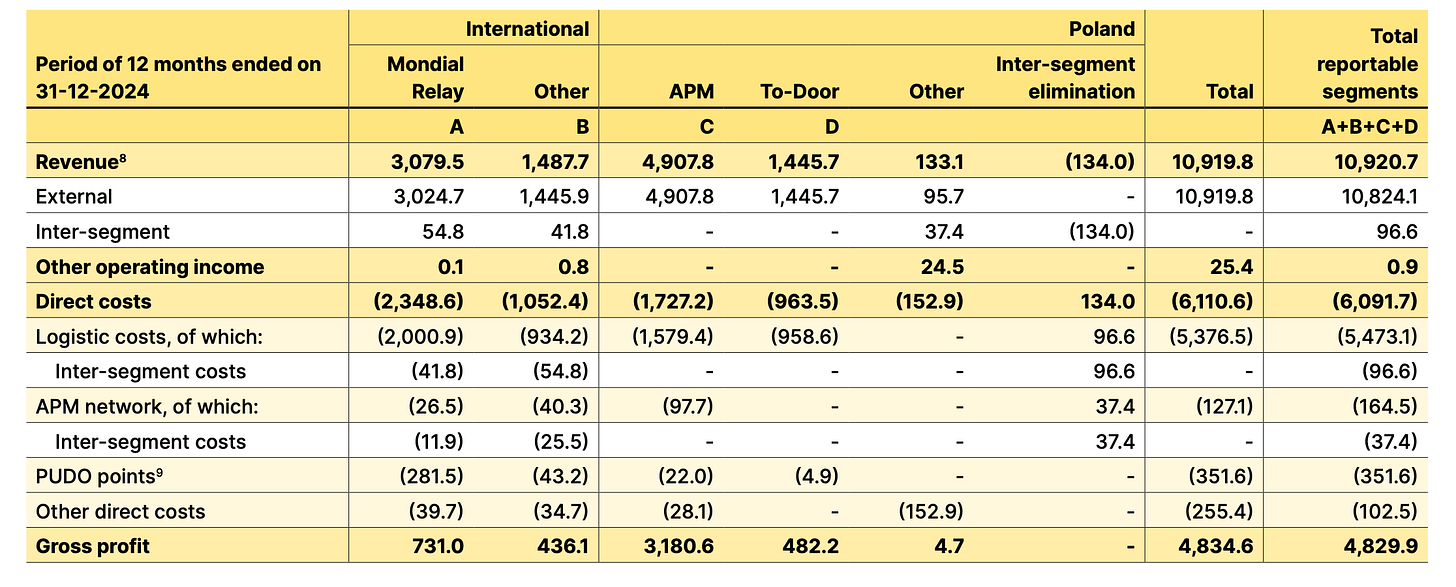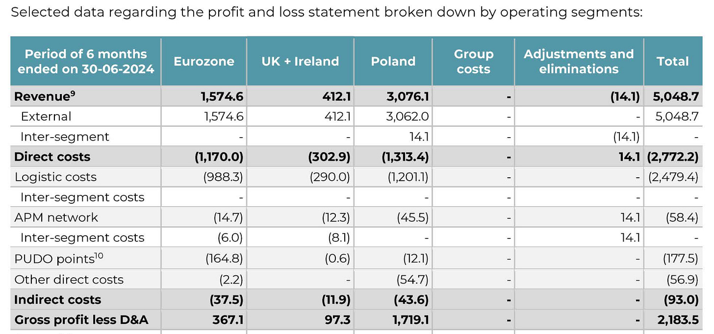 But InPost in still a fast-growing business, so really we should do the same exercise for the H1 2025 run rate. The Polish segment earned 1,118.4 million PLN in operating profit in just the first half. Annualizing that gives 2,236.8 million PLN, which equals roughly €520 million at the same 4.3 PLN/EUR rate.