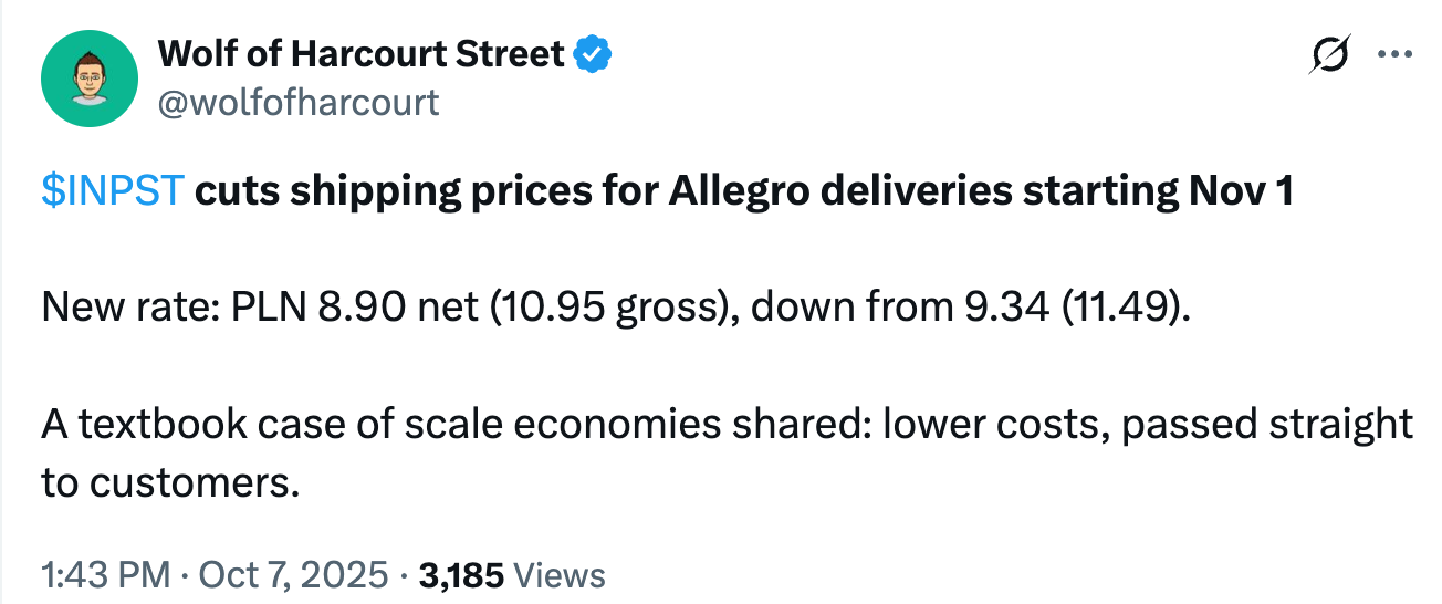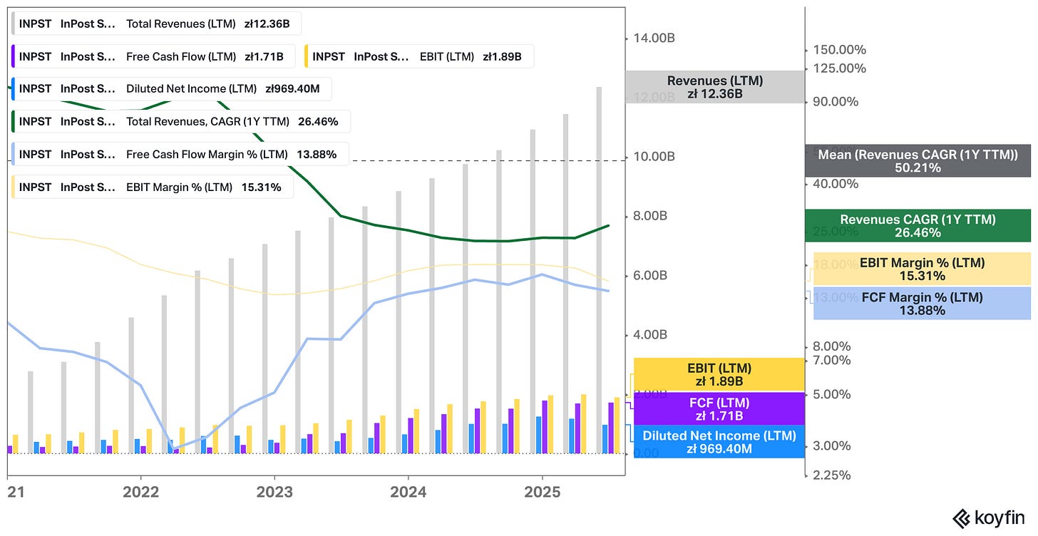 To me, InPost is the most “Peter Lynch-style” stock I’ve researched in quite a while. It’s a rather boring business at first glance – one that many investors might reject too quickly because it lacks an exciting narrative to wrap around it. Yet that’s precisely what makes it interesting. This is a company with a simple, easy-to-grasp model, predictable cash flows, and a structure that’s counter-positioned to incumbents weighed down by legacy courier operations. It’s a fast grower hiding in plain sight, operating in a space most investors would never call glamorous but that quietly compounds volume, habit, and efficiency year after year.