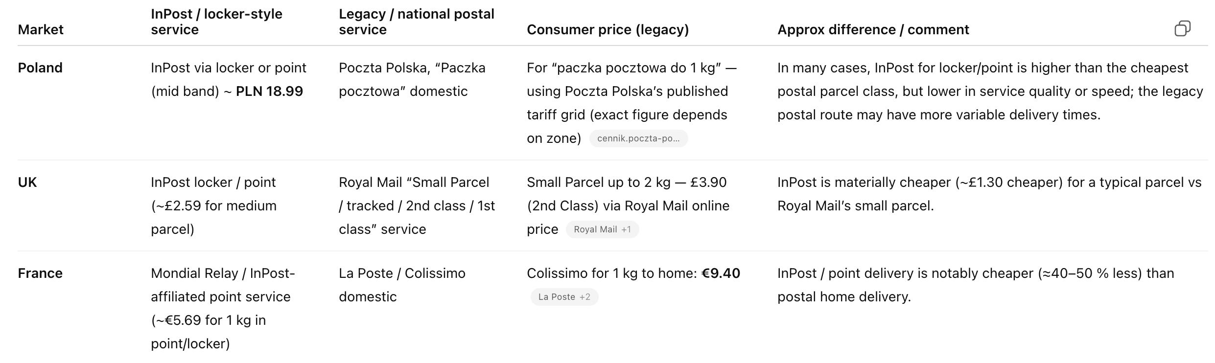 So in sum, customers get faster, cheaper, and more flexible parcel delivery; merchants gain a reliable, scalable logistics partner that improves conversion and reduces last-mile costs; and property owners hosting lockers benefit from an additional, low-maintenance revenue stream and higher foot traffic to their sites. This alignment of incentives reinforces network effects on all sides, strengthening InPost’s moat as the network scales.