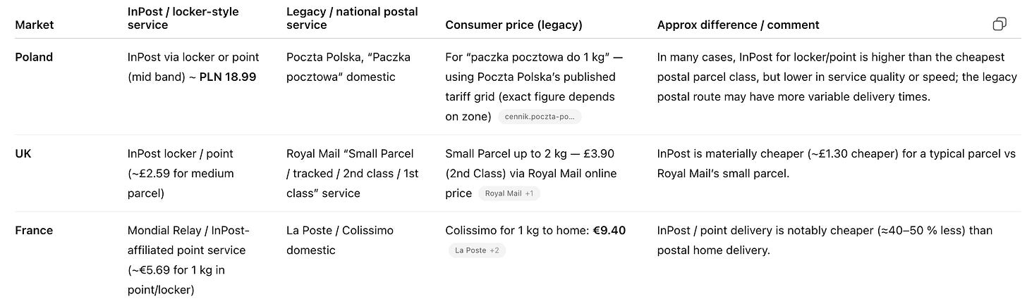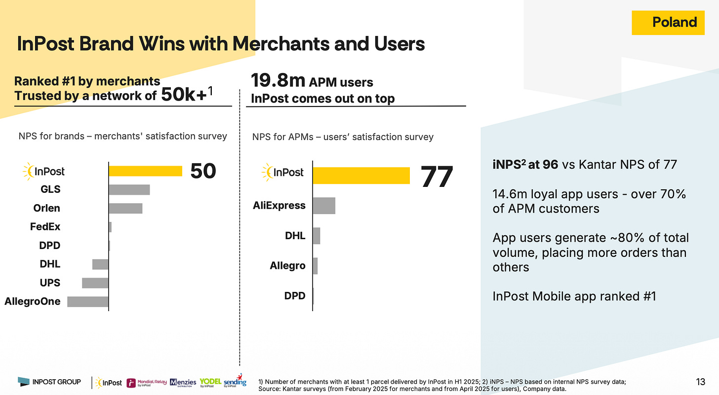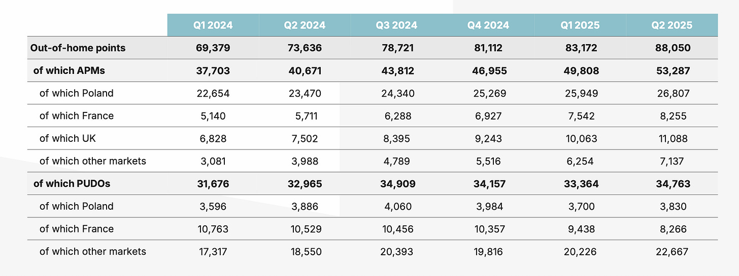 Internationally, for InPost, every conversion from a PUDO parcel to an APM parcel isn’t just a small operational gain – it’s a step closer to recreating the Polish economics abroad. The transition takes patience and capital, but the reward is clear: once lockers dominate, the business becomes self-reinforcing – higher utilization, lower variable cost per parcel, and a customer experience that’s almost impossible for incumbents to match.