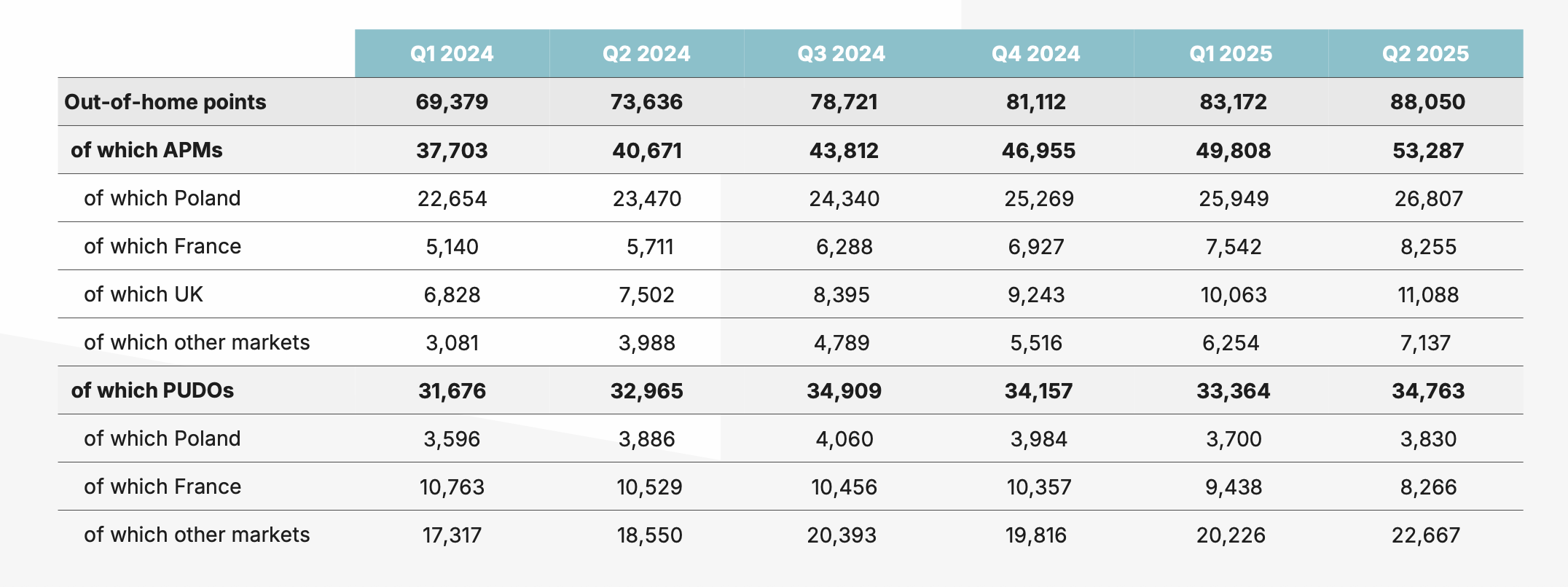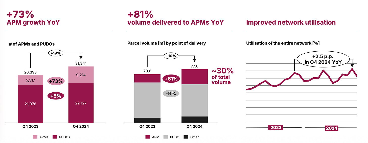 “In terms of your question more strategically on expansion and PUDOs versus APMs, look, we don’t disclose individual numbers on those different streams, but it’s obvious that the efficiency of delivering a PUDO network versus an APM network is much more to the favor of an APM network.“ - Q4 24 Call