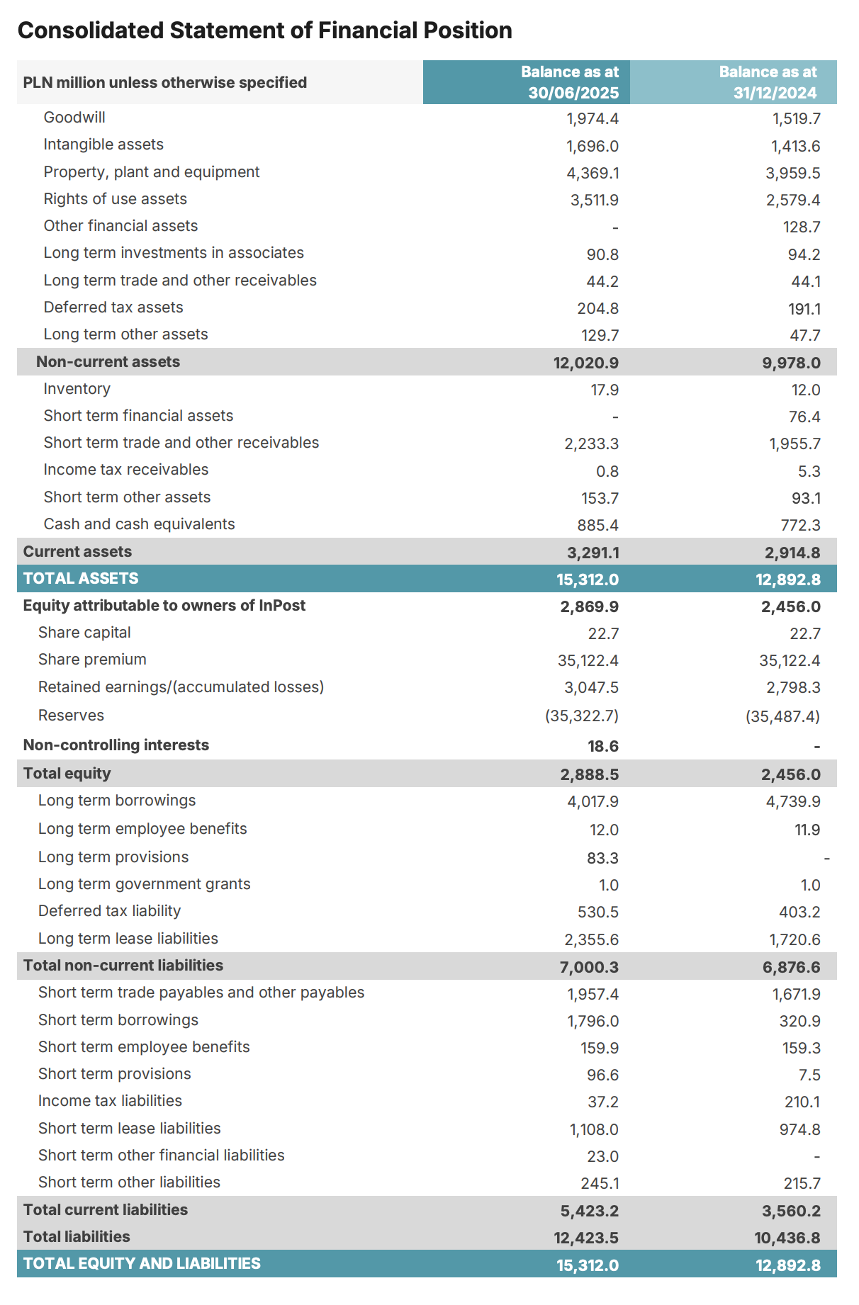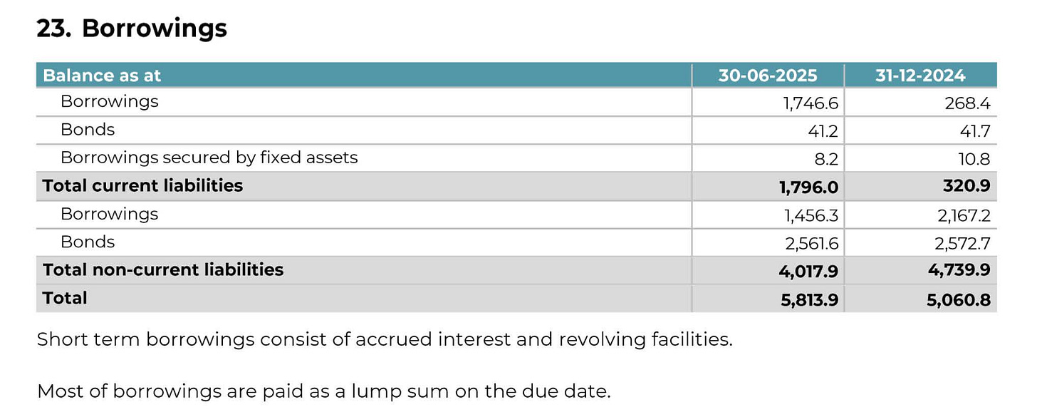 As of the time I’m writing this, the company currently trades at a market cap of roughly €5 billion and an enterprise value of around €7 billion. Those are the numbers Koyfin displays, and I think they are directionally correct. Based on the most recent balance sheet (see part 4), the company reported total borrowings of PLN 5.8 billion and cash and equivalents of PLN 0.9 billion, resulting in net debt of approximately PLN 4.9 billion, or about €1.15 billion when converted at an exchange rate of 4.3 PLN per euro. In addition, lease liabilities, both short- and long-term, amount to PLN 3.46 billion, or roughly €0.8 billion, which are typically included in enterprise value calculations. Adjusting for the small non-controlling interest of PLN 18.6 million, the implied enterprise value comes out to roughly €7.0 billion.