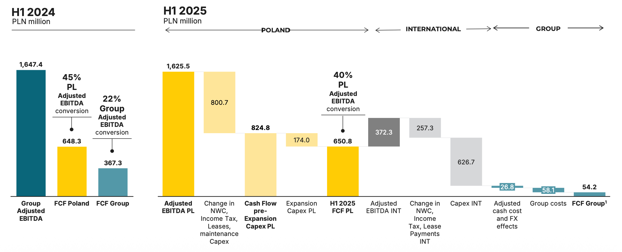 Starting with the Polish business, H1 2025 EBIT was 1,118.4 million PLN. Annualizing that gives 2,236.8 million PLN. Using the same 4.3 PLN per euro exchange rate, that equals roughly €520 million in annualized EBIT.