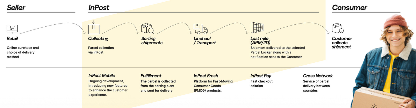 It’s a logistics infrastructure play disguised as a consumer service. Unlike traditional couriers who rely on doorstep deliveries, InPost’s model is built around out-of-home (OOH) delivery – a structural shift in how e-commerce parcels move from merchants to customers. Basically, the end-consumer is doing last-mile delivery himself; and they can also do returns via the APMs.