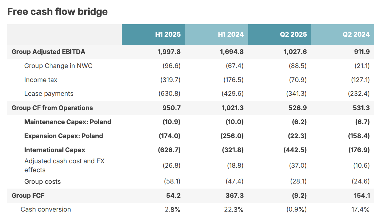 Free cash flow conversion is temporarily low, margins outside Poland lag, and leverage is higher than ideal. Yet those are predictable symptoms of expansion, not red flags.