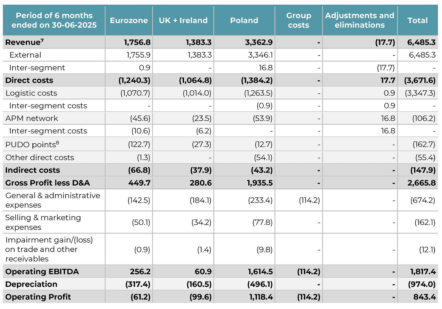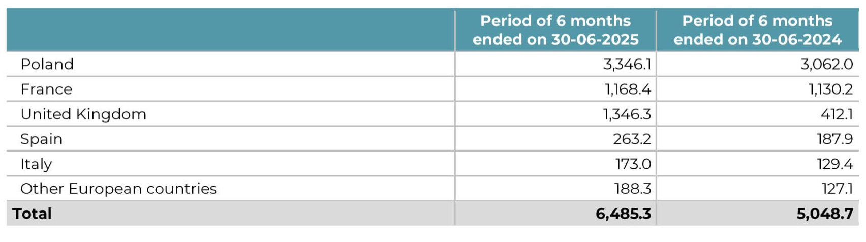 For the first half of 2025, Poland generated 3,362.9 million PLN in revenue and 1,118.4 million PLN in operating profit. That translates into roughly a 33% EBIT margin. Using an average exchange rate of about 4.3 PLN per euro, that’s around €782 million in revenue and €260 million in operating profit.
