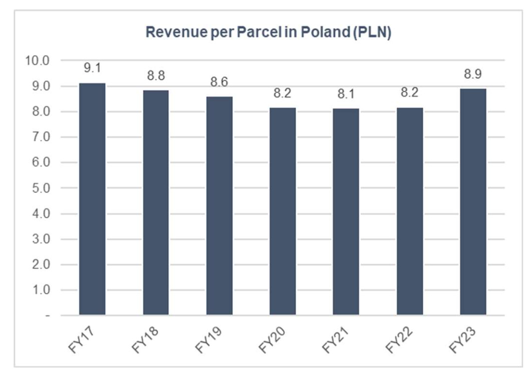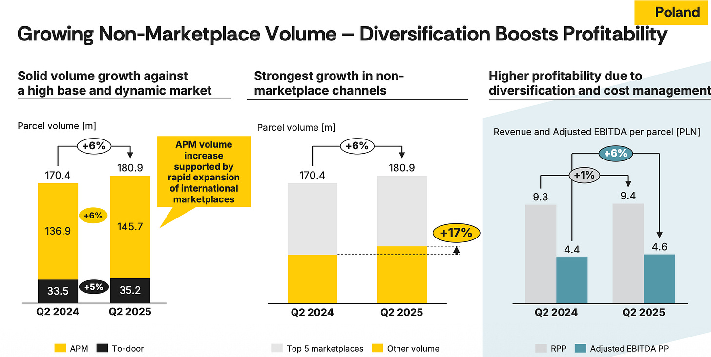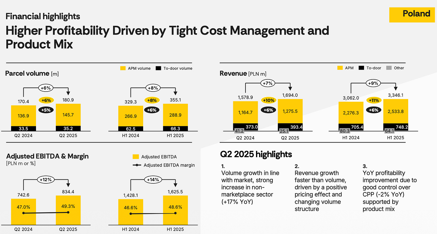 Temporary tailwinds have played some role in the recent acceleration. The rebound in European e-commerce volumes after a sluggish 2023 has helped the optics. Likewise, declining parcel competition in Poland – partly because weaker couriers exited the market – has made underlying growth look stronger. But those are short-term boosts. The core driver is still density-driven operating leverage, which doesn’t depend on cyclical demand swings.
