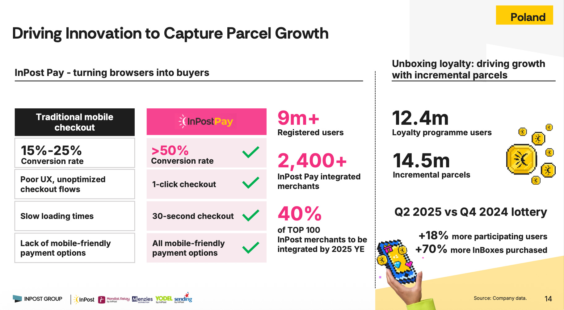 A: Of course, for us in North Star is 100% of APMs in out-of-home. This solution provides best-in-class customer experience, 24/7 access to the service, localization, but also extraordinary good efficiency, operating leverage, which then translates into profitability. And I think this is the DNA of the company. Still even in Poland, we keep some PUDO points mostly for the locations where we cannot expand, extend our lockers, let’s say, in city centers. But -- this is our way. We know how to do it. We know how to transform it. And also looking at the consumer adoption on the new markets we developed from scratch, we see consumer preferences, and it’s hard to discuss with that. The preference is here, and it’s not about lockers itself. It’s all about the ecosystem we’ve built, giving our end users the confidence that this is the best solution, matching their expectations. […]