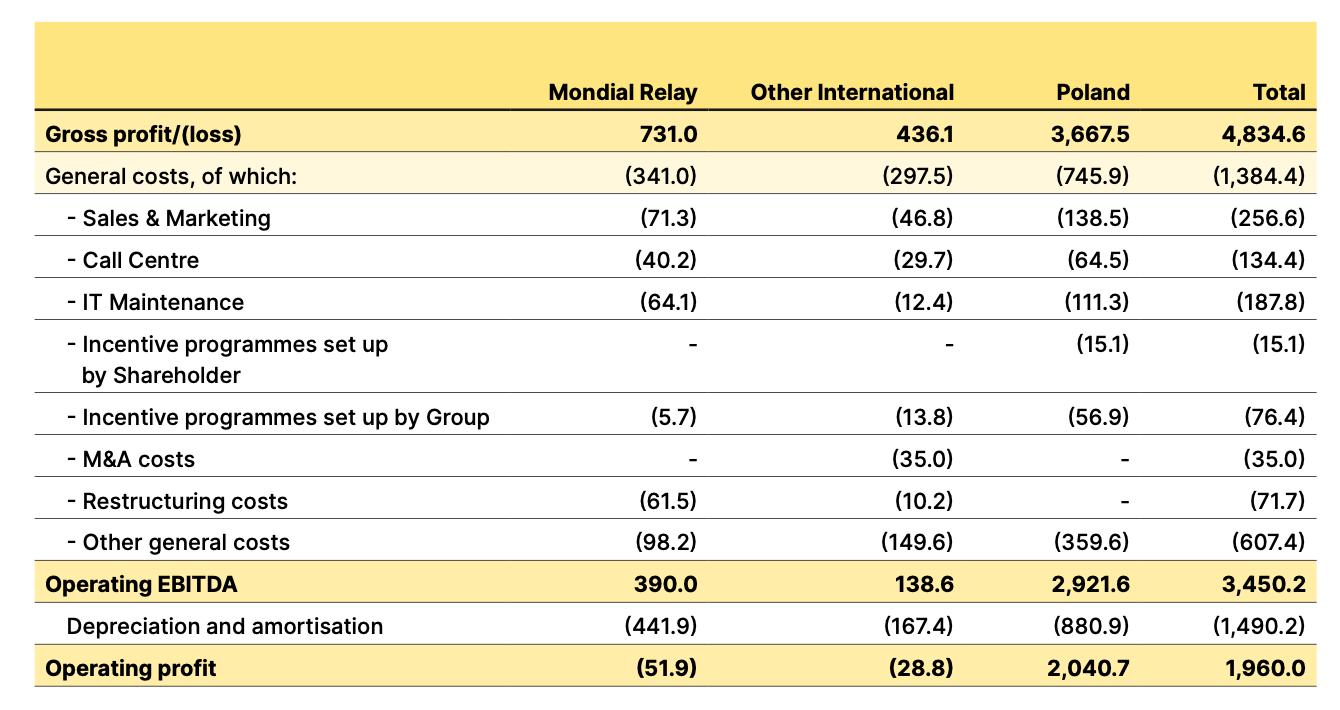 Before getting into the complexity of modeling and valuation, I like to start with something simple. What would InPost’s margins look like if its international businesses eventually resembled Poland? The Polish operation has been around the longest, is most mature, and arguably serves as a proxy for what “steady state” economics could look like once density and utilization improve elsewhere. So let’s do the math.