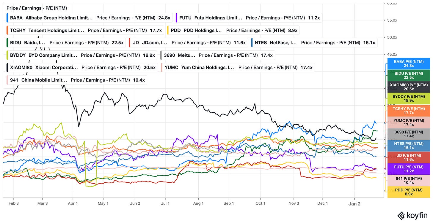 Valuations reinforce that impression. Forward P/E ratios across leading Chinese companies span a wide range, but many sit at levels that would look conservative in almost any other major market – especially by US standards.