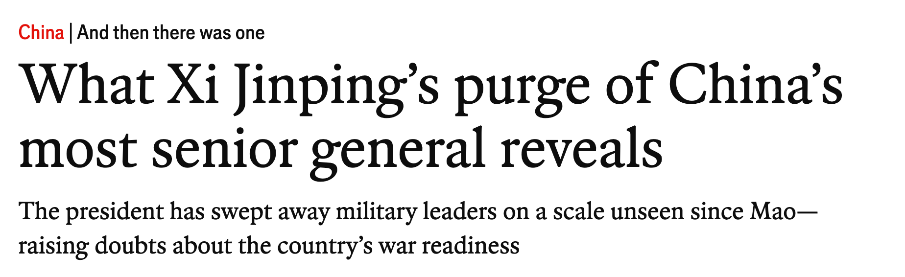 The Economist described it as one of the most dramatic blows to China’s military leadership in decades. In a short span of time, Xi has effectively hollowed out the upper layers of the PLA, purging not only generals appointed by previous leaders but also many of his own protégés. From one perspective, this looks like a classic authoritarian consolidation of power. From another, it looks like a system under stress, where loyalty and competence are increasingly difficult to reconcile.