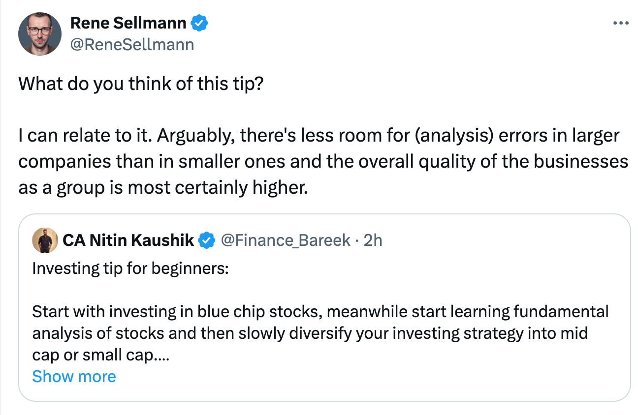 For those just starting out, it might make sense to begin with blue-chip stocks—those with market caps above $100 billion—before gradually diversifying into mid-cap and small-cap stocks. Blue chips generally offer a safer introduction to the market, as they tend to be more stable and have more predictable earnings. However, as you gain experience and confidence in your stock-picking abilities, small caps can offer significant upside potential.