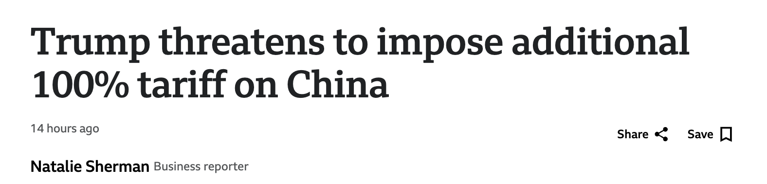 The timing was curious. On Friday evening, U.S. markets stumbled after Donald Trump once again threatened 100% tariffs on Chinese imports, this time over the ongoing rare earth dispute.