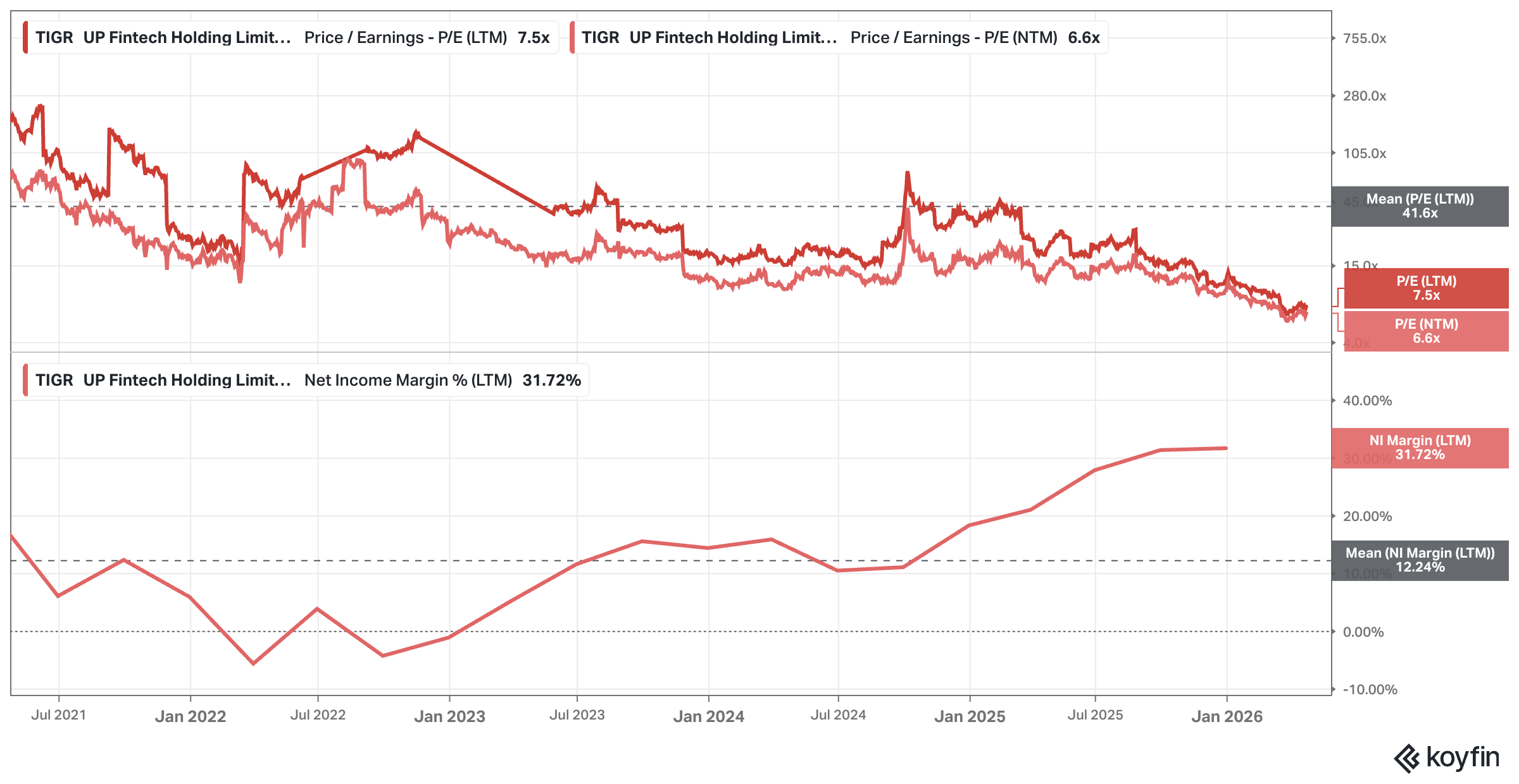 When I look at the hard numbers, the disconnect between market sentiment and fundamental reality becomes even more pronounced. Investing is ultimately a game of expectations, and for the current incumbents in the Asian brokerage space, those expectations have been beaten down to a level that I find genuinely remarkable. To justify its current valuation, a business like Tiger Brokers doesn’t need to conquer the world; it doesn’t even need to grow at all, and if it maintains even a modest level of growth, I believe the stock should do very well from here.