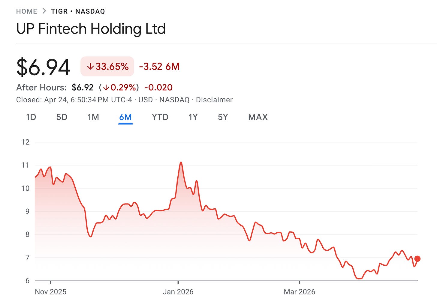 The immediate reaction from the market was telling. As highlighted, Tiger Brokers was down significantly following the announcement, which is not exactly surprising given the negative momentum of the stock this year.