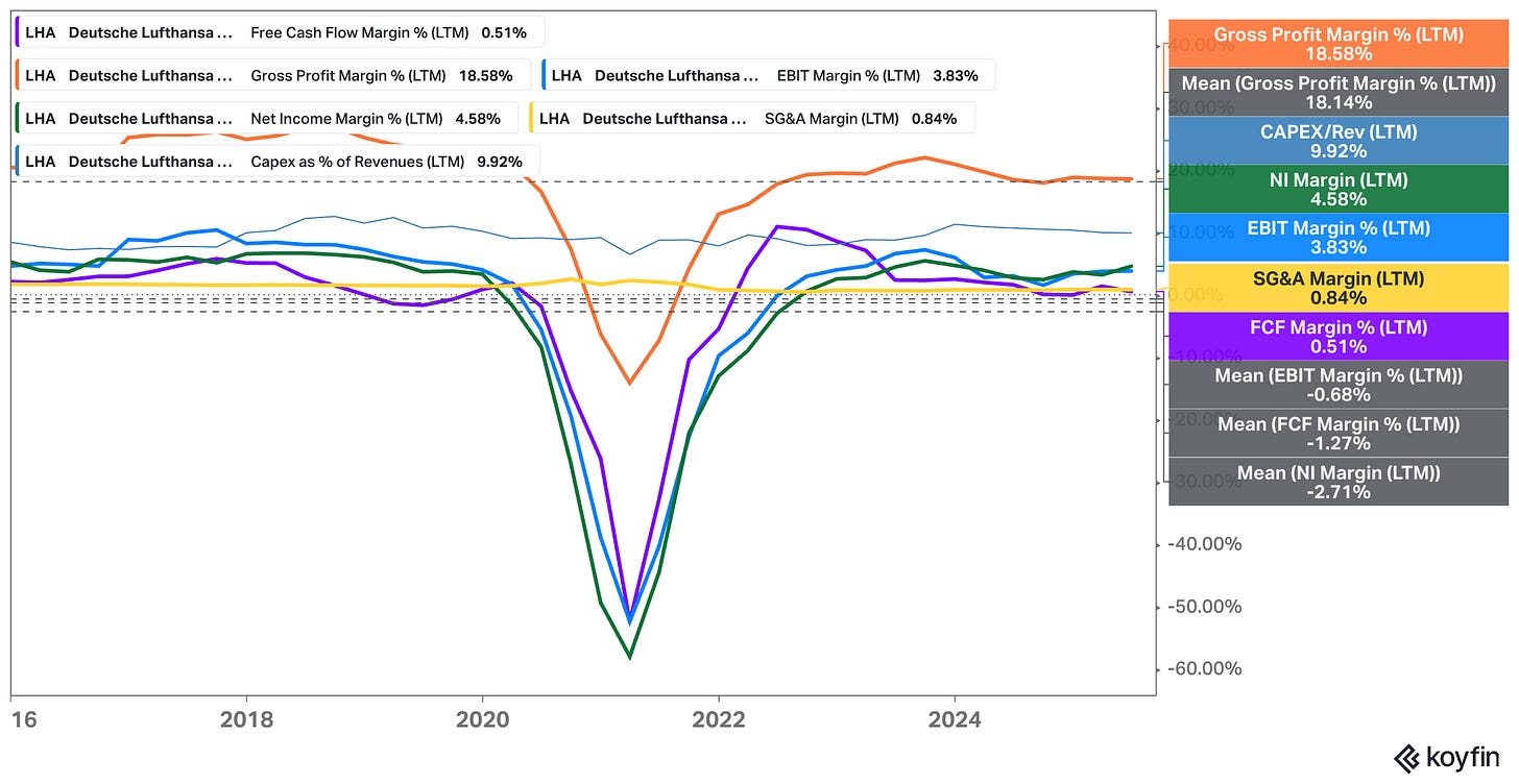 Then there’s labor. Pilots, cabin crew, and mechanics are skilled, unionized, and rightfully demand strong pay. So when times are good, wages rise; when times are bad, airlines can’t cut them fast enough. Few industries have a cost base so rigid yet a revenue line so volatile. It’s no wonder the average airline’s net profit margin hovers around one or two percent in good years and dives into red ink during downturns.