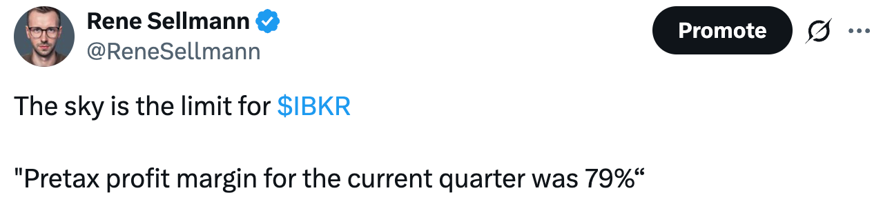 On paper, brokers should behave more like airlines: brutal competition, low switching costs, and constant pricing pressure. But that’s not what we see. Instead, the average brokerage platform operates with gross margins north of 80 percent. Interactive Brokers keeps making headlines by posting higher and higher EBT margins.