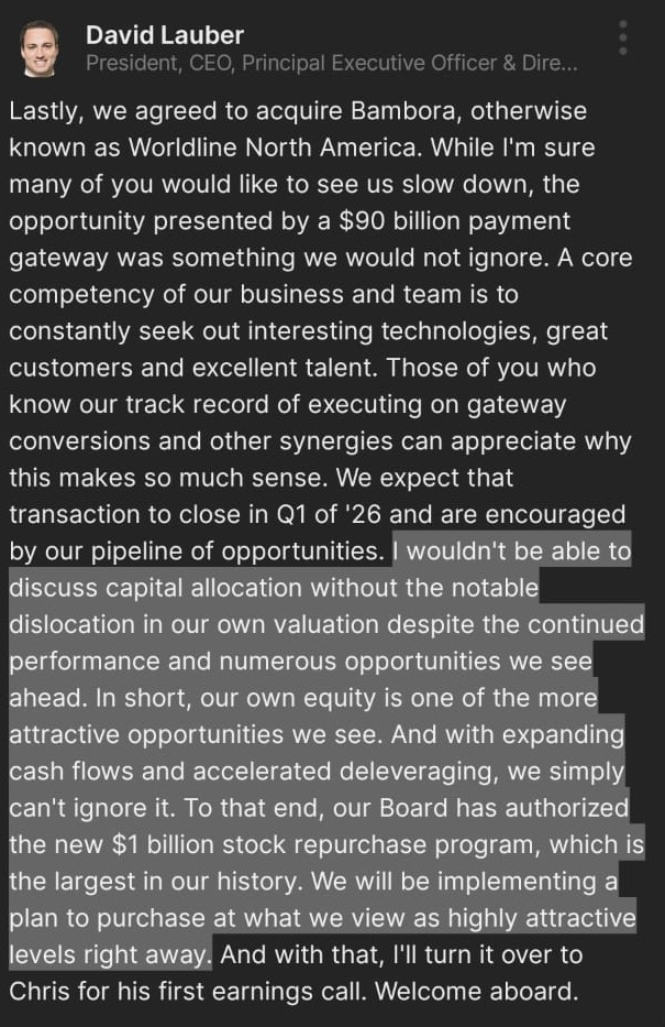 That’s when capital allocation and corporate integrity intersect. Management must resist the temptation to entertain offers that undervalue the business simply because sentiment is weak. In those situations, alignment of interest and clarity of purpose matter even more than precise capital allocation math.