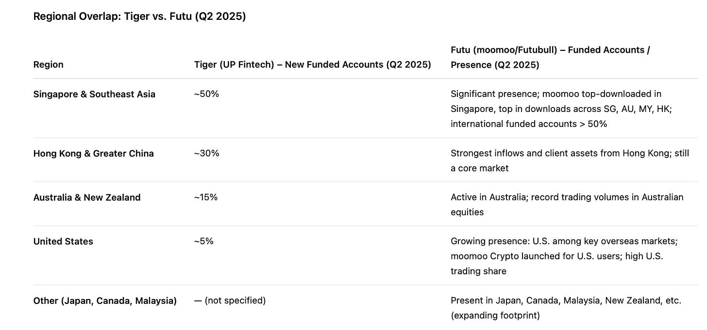 So in sum, while Tiger might look like a Robinhood or Futu on the surface, it’s playing a slightly different game: more international, more full-stack, more regulatory-intensive – and potentially, more defensible.
