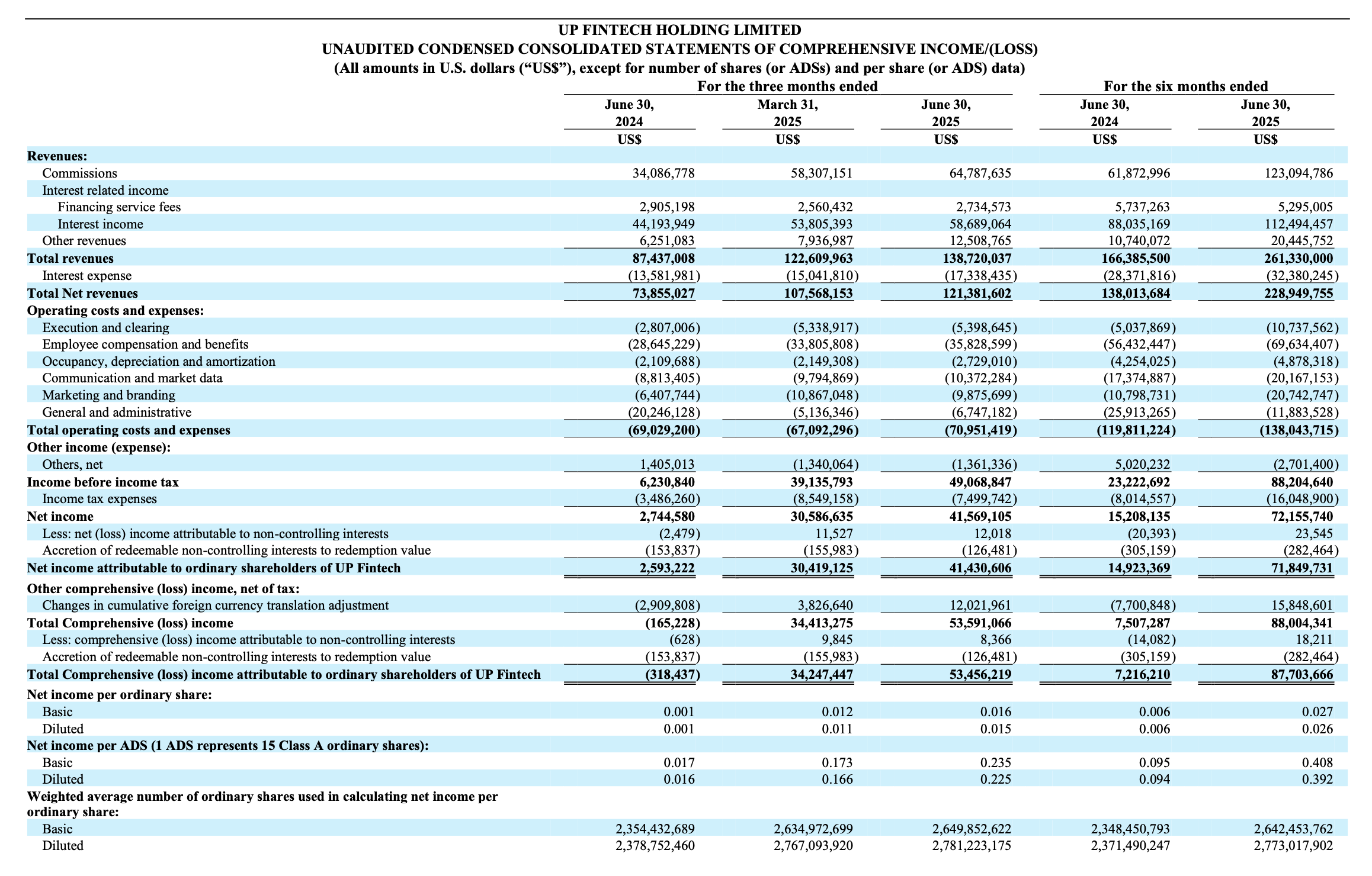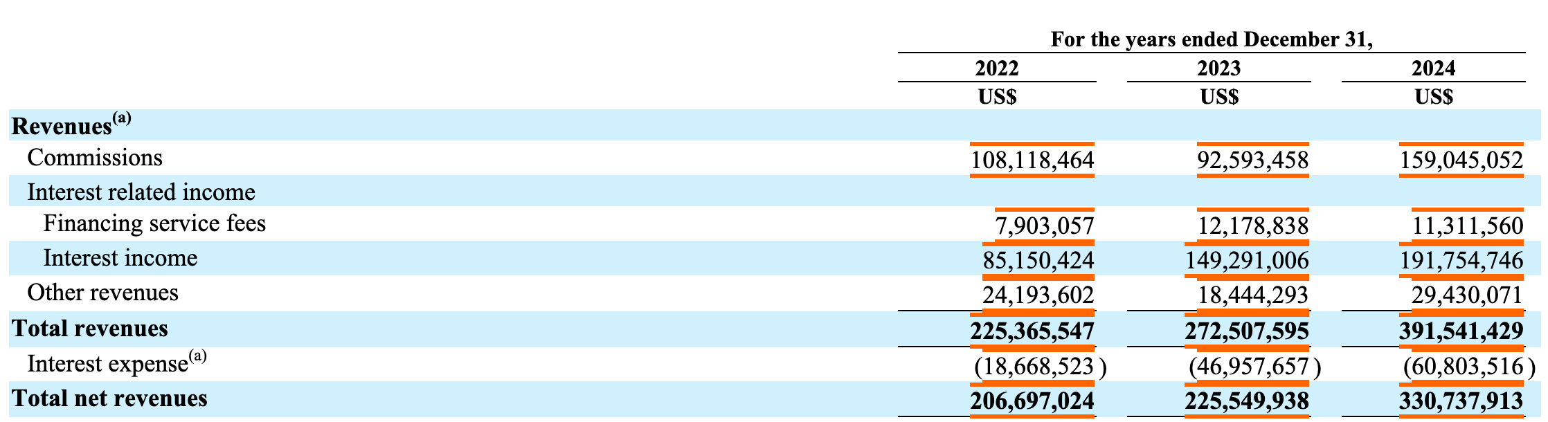 We generate revenues primarily by charging our customers commission fees for trading of securities as well as earning interest income or financing service fees arising from or related to margin financing and securities borrowing and lending transactions provided by ourselves or third parties to our customers for trading activities.“ - 2024 Annual Report