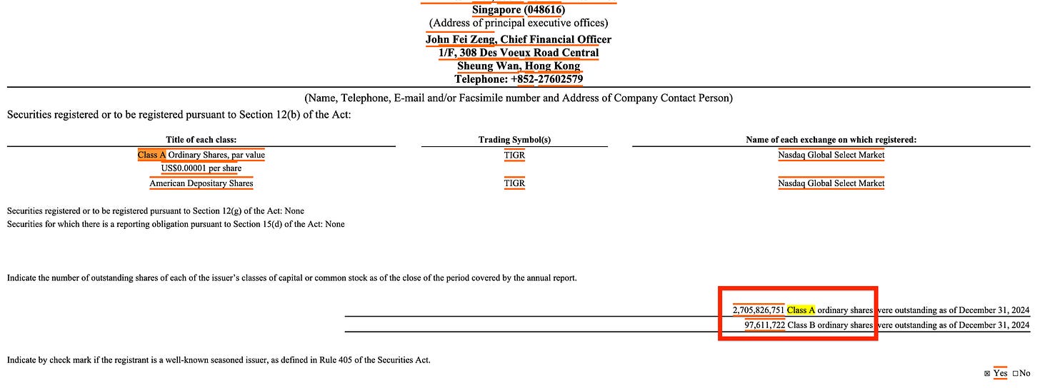 Another governance risk worth addressing is Tiger’s dual-class share structure. Like many Chinese ADRs, the company has split its equity into Class A and Class B ordinary shares, with Class B carrying 20 votes per share versus one for Class A.