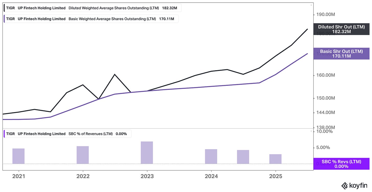 Tiger isn’t a perfect business. The moat is still forming, the revenue base is activity-heavy, and there’s dilution, governance quirks, and the ever-present regulatory overhang that comes with being tied to China in any way. But investing is about weighing probabilities, not waiting for perfection. And when I weigh the risks against the upside, the balance tilts favorably.