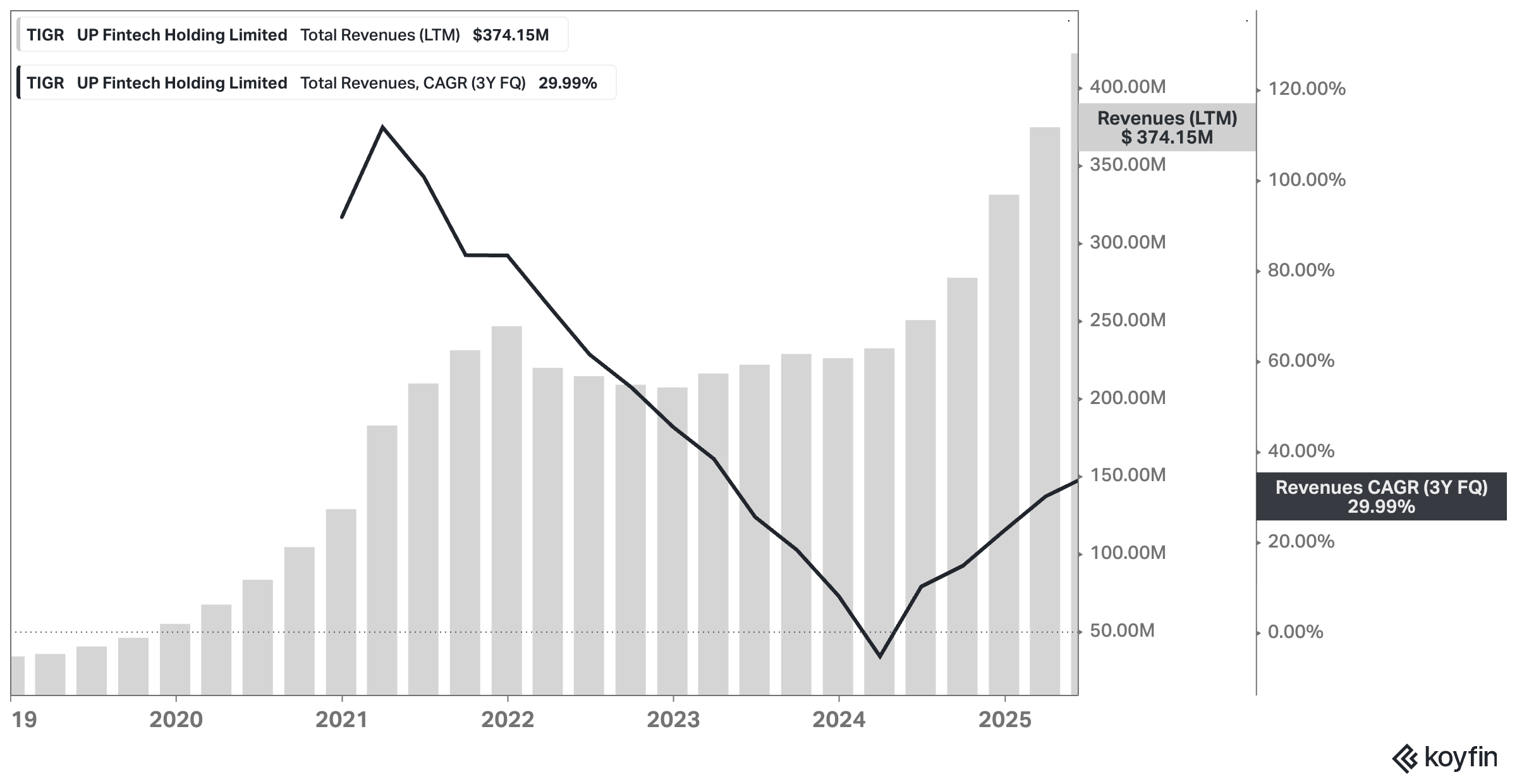 When you look at UP Fintech Holding – better known as Tiger Brokers – it’s hard not to notice the paradox. On the one hand, the company just reported record highs in revenue, profit, client assets, and funded accounts. Growth is high – very high! – international expansion is successful (so far) and paying off, and the balance sheet is cleaner than it’s been in years. On the other hand, the stock – despite a spectacular run – still trades at levels that imply a heavy dose of skepticism, arguably weighed down by lawsuits, China’s regulatory baggage, worries about peak earnings, and investor doubts about whether Tiger can ever catch up to rival Futu.