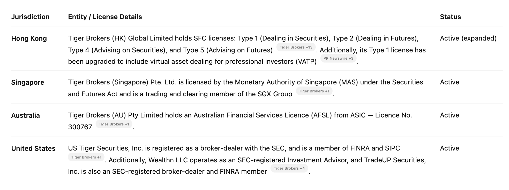 This isn’t a commodity brokerage. Tiger competes primarily through product depth and localization, not rock-bottom pricing. It’s positioned in the mid- to upper-tier of the digital brokerage space – above no-frills, budget players but below private banking and traditional wealth managers. The onboarding process is smooth, the UX is polished, and the range of investable assets is deep enough to retain more sophisticated clients over time. One of the more notable differentiators is Tiger’s effort to build a globally accessible brokerage product with strong compliance infrastructure – licenses in Hong Kong, Singapore, Australia, and the U.S. are now live or in progress. That regulatory stack alone is not trivial to replicate.
