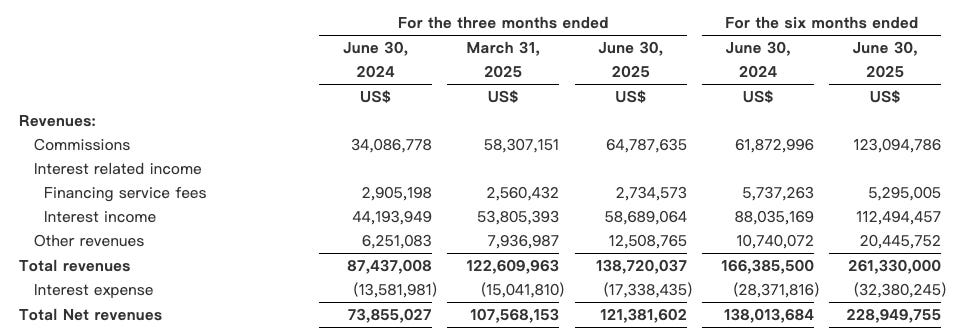 While the bulk of Tiger’s net revenues still come from trading commissions and interest income (91% of the first six months of 2025), there’s an emerging third leg worth mentioning: enterprise SaaS and corporate (consulting) services. This is where the company is quietly building diversification beyond the retail brokerage.