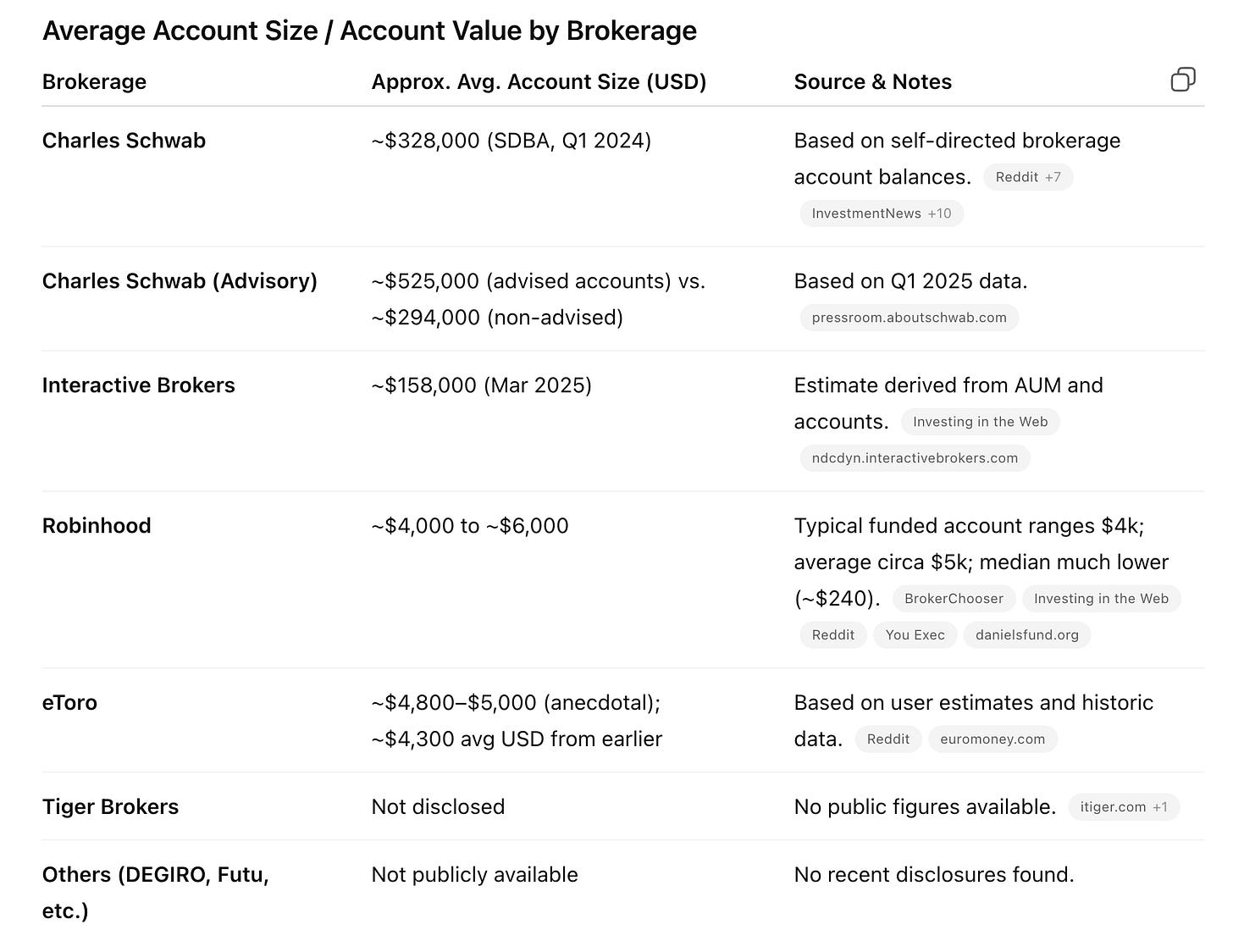Switching costs? Some, but not decisive. There’s friction in moving money, but it's not a deep integration the way you’d see in enterprise software. It’s not SAP. Most users aren’t locked in. They can, and some (or many?) do, multi-tenant – i.e. they have multiple brokerage accounts. So while there’s a degree of stickiness, it feels more like inertia than true lock-in.