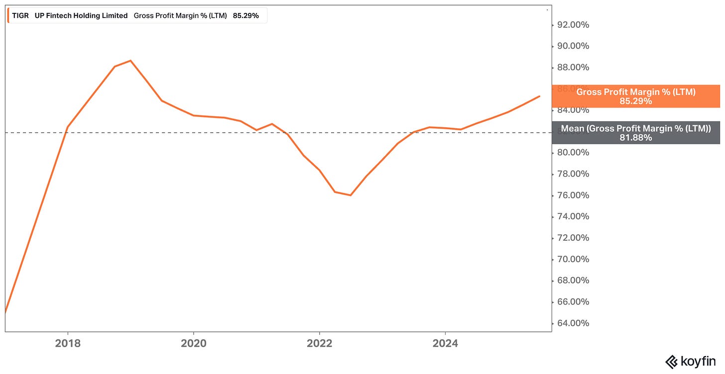 That’s important: it means Tiger has more room for profitability expansion as it scales, while Robinhood or IBKR are largely already there.