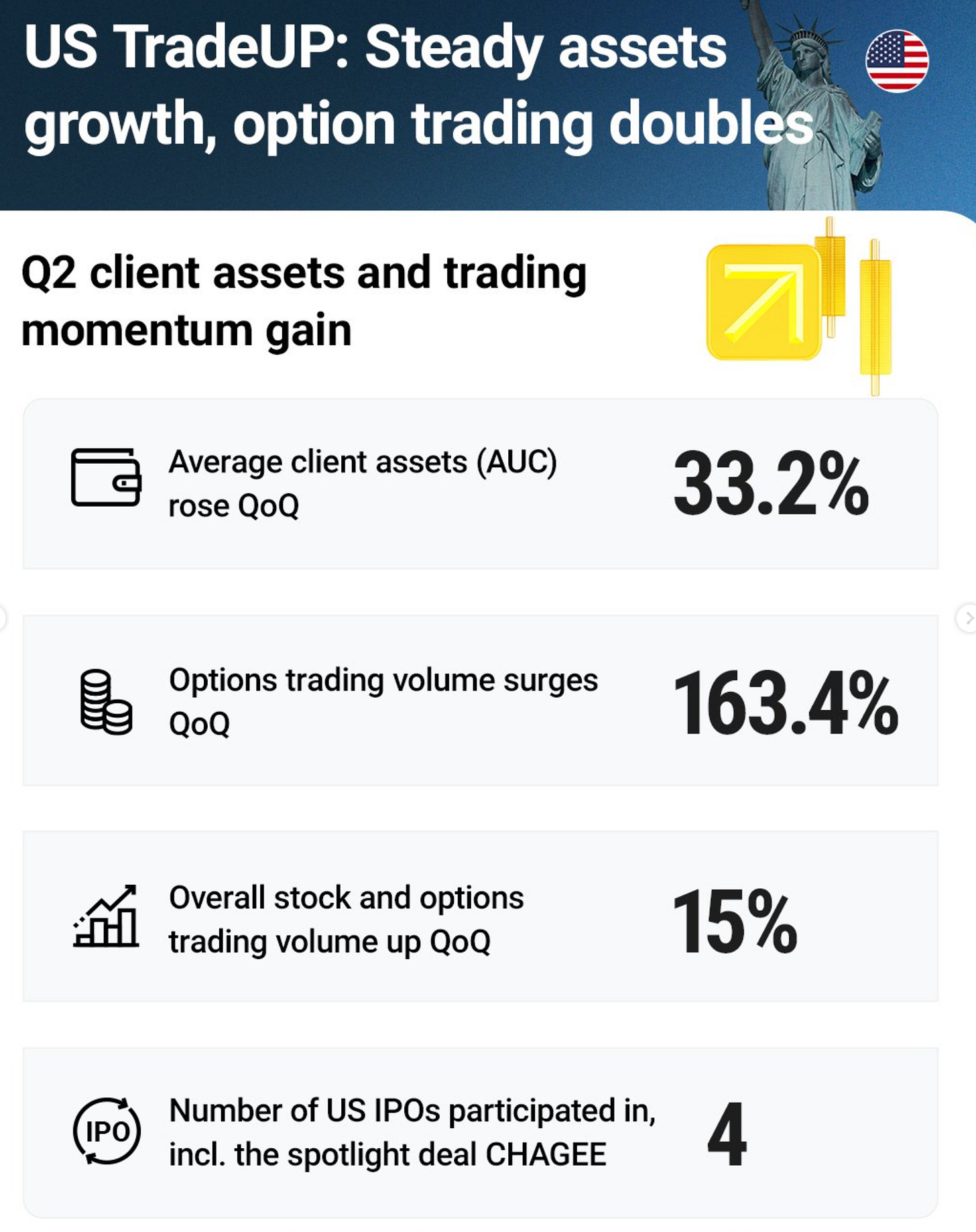 “[…] most importantly, targeted adjustments we made to our customer acquisition channels. This included shutting down some low quality, low ROl channels and posting certain online advertisements in Singapore to ensure the high quality user base. Overall, these adjustments have been proved to be effective. We place great emphasis on increasing client assets and maintaining a healthy net asset inflow mix.“