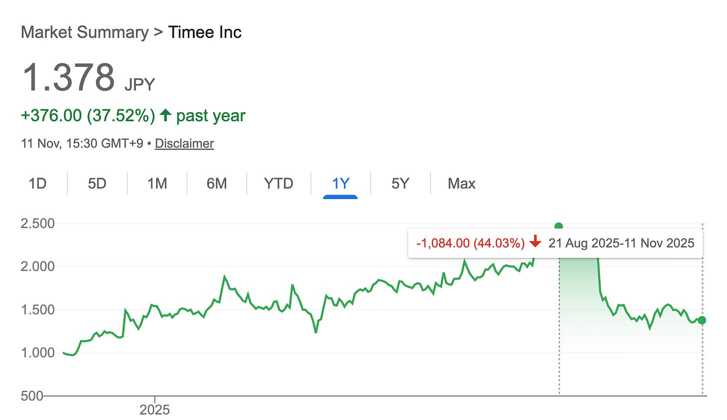 What makes this moment so interesting isn’t just that a major competitor exited the stage or that an analyst report confirmed Timee’s market dominance. It’s that these developments happen right during a broad selloff in the stock.