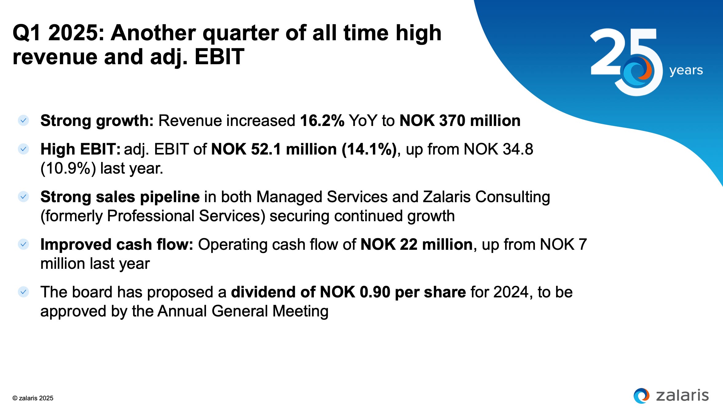 “We have overdelivered significantly on the growth and profitability trajectory we set out at our September 2023 capital markets day. With a proven strategy and positive momentum, we are strongly motivated and in a stellar position to continue delivering superior and sustainable value creation for our stakeholders.” - Hans-Petter Mellerud, CEO and co-founder of Zalaris